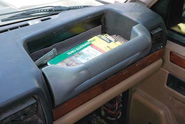 My final load bay modification was actually in the dashboard. Since I had already disabled the SRS system there was no point in keeping the airbag assembly on the passenger side. I sourced a grab handle from a British Discovery I, and installed it. The fit isn’t perfect, but it does allow a deep cubby for loose gear stowage as well as a modicum of support for the passenger when high-speed desert shenanigans ensue.