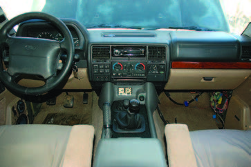 After getting the drivetrain in, it was just a matter of completing the inside with the center console and shifter boots, and tying up a few loose ends, such as eliminating the alarms and interlocks for the Borg Warner transfer case and the automatic transmission. Replacing the seats with cloth versions sourced from RoverDude was a straight swap.