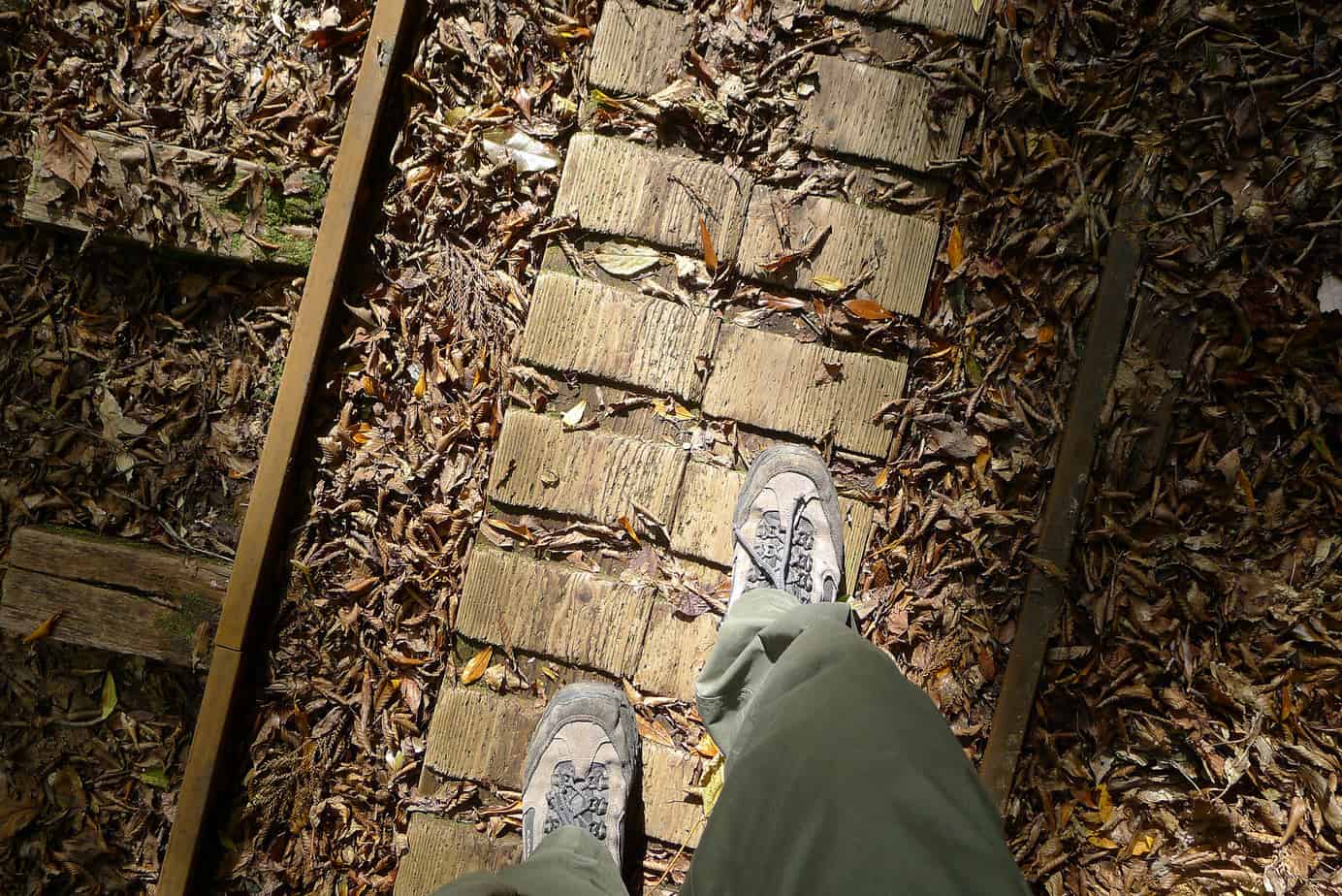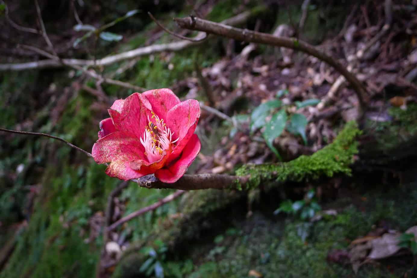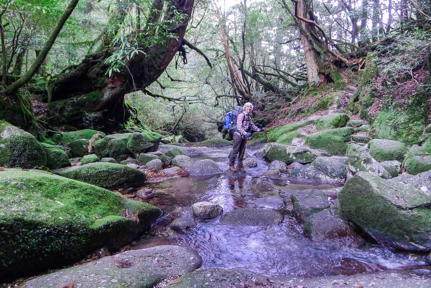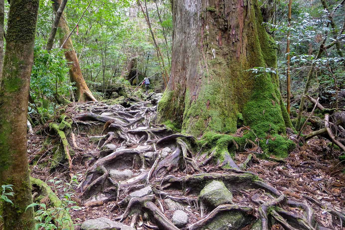 “Here you have to get off,” the bus driver indicated. We took out our walking sticks, hoisted our backpacks and headed for the trail, excited to find out what lay ahead of us. Within a couple of minutes we were engulfed by the forest. Most of the primary forest had been cut in the 18th and 19th centuries and been replaced by secondary forest, but a few trees had survived the onslaught. The handful of Yagoi-sugi cedars, hundreds of years old, were humongous and demanded respect. The trail, sometimes provided with stairs built of wood, cut through the vegetation. It wove around trees, wide, heavy, aerial roots, and vines and boulders covered in moss. With the afternoon light filtering through the foliage, the terrain and atmosphere created a fairy-tale kind of forest—inviting, innocent, beautiful, yet with a who-knows-what’s-behind-that-corner feel, like in a Lord of the Rings movie. Even though most trees were young the landscape felt old and magical. The density of the forest demanded the trees to work hard to survive. To reach the sun, many were twisted in the weirdest shapes with trunks and roots intertwining, or one trunk splitting into multiple trees.