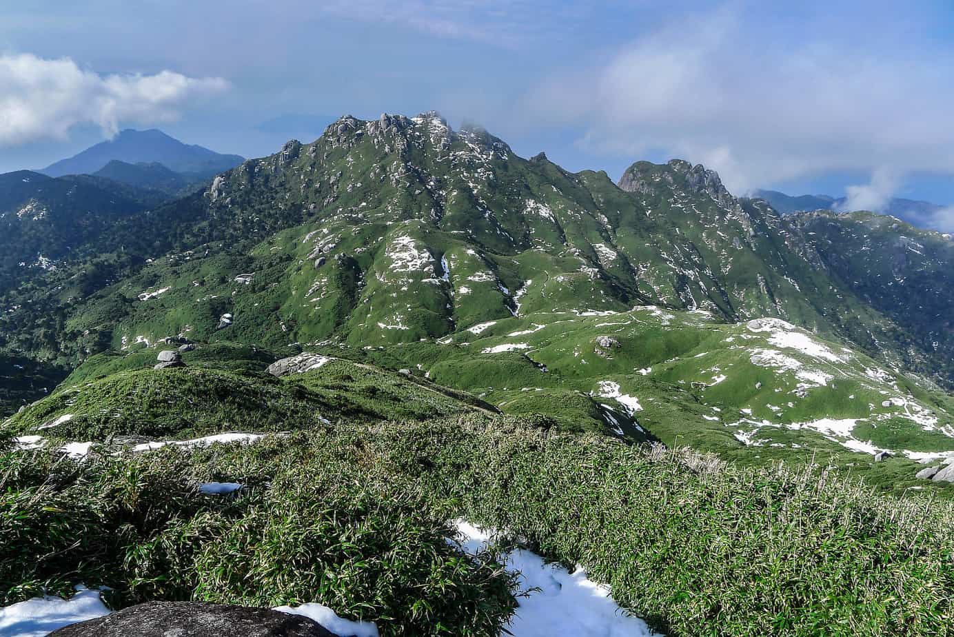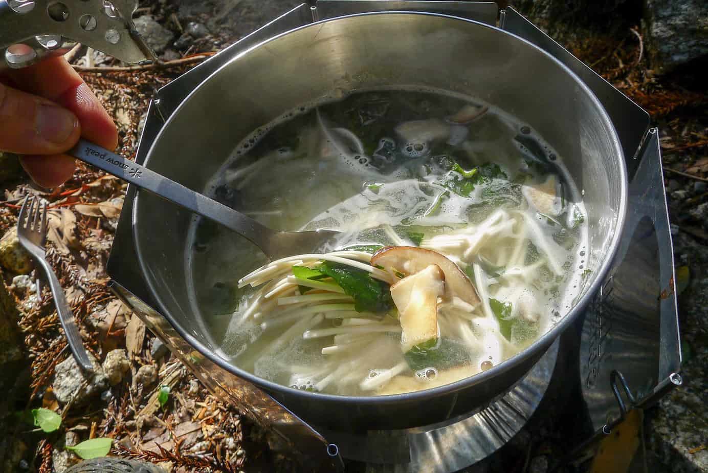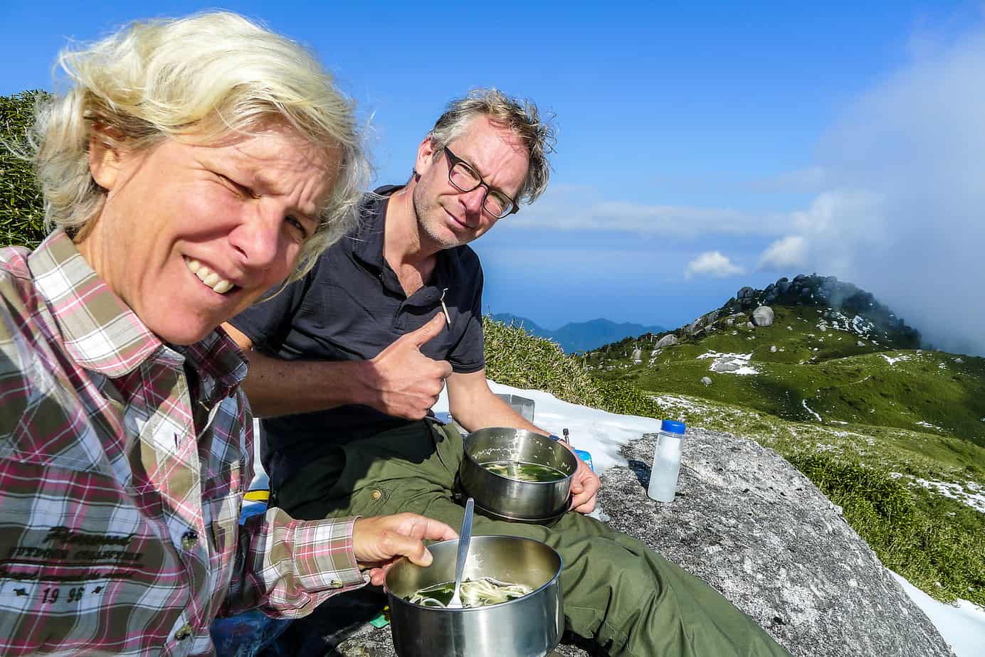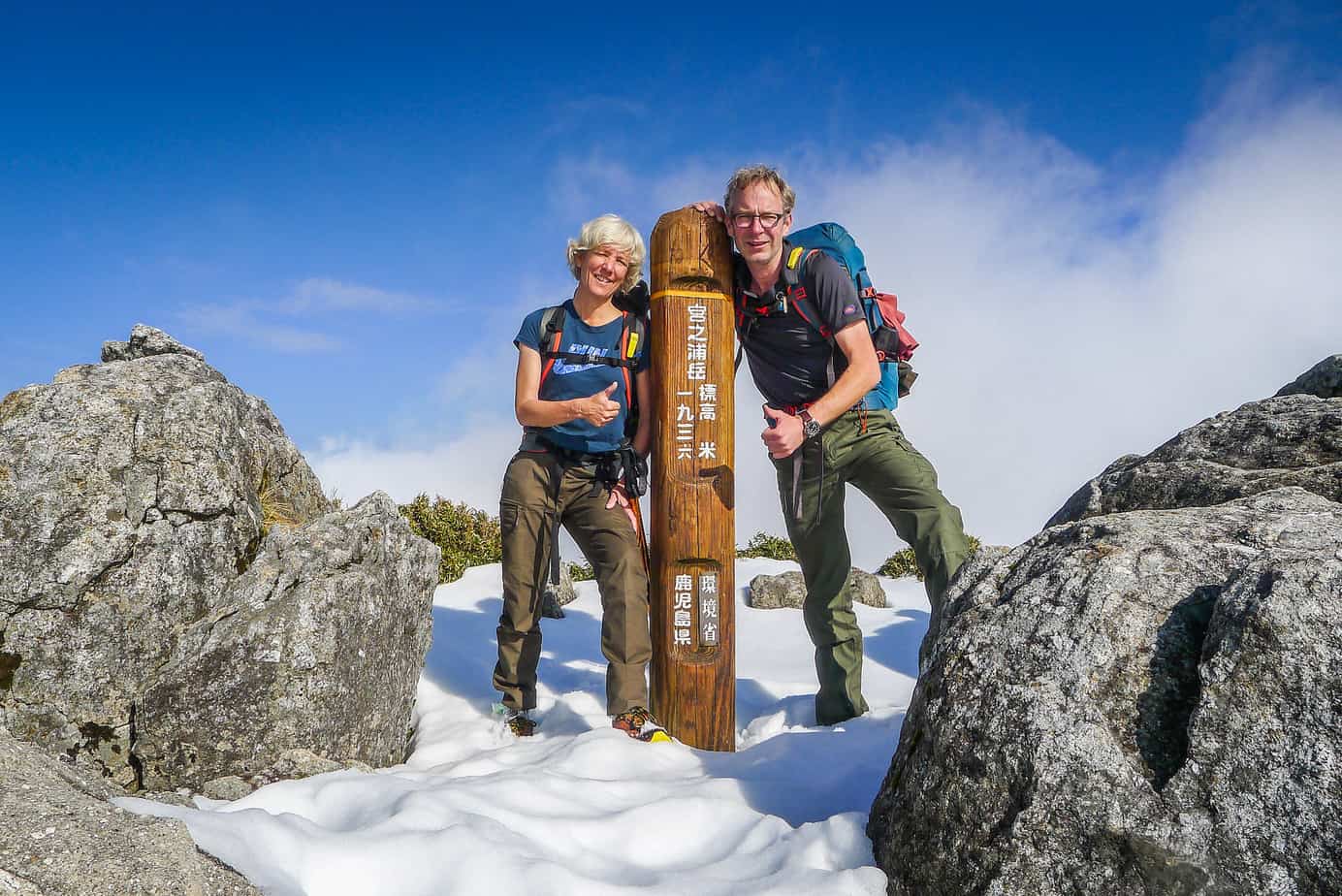 On a bare rock we sat down, took out our MSR stove and cooked our twice-a-day hiker’s dish of noodles with seaweed and mushrooms while we nibbled on a piece of dried fish with sesame seed. We lingered in the warming rays of the sun. Could we stay here forever, please? Rather than taking the same route back, we hoped and anticipated that there would be less snow on the other side of the 1,936-meter high Miyanouradake Mountain. I have no memory on what kind of argument we based this assumption, but in retrospect it was a misguided notion of two people who come from a flat country with little snow. We clearly don’t have a clue what the combination of mountains and snow can do.