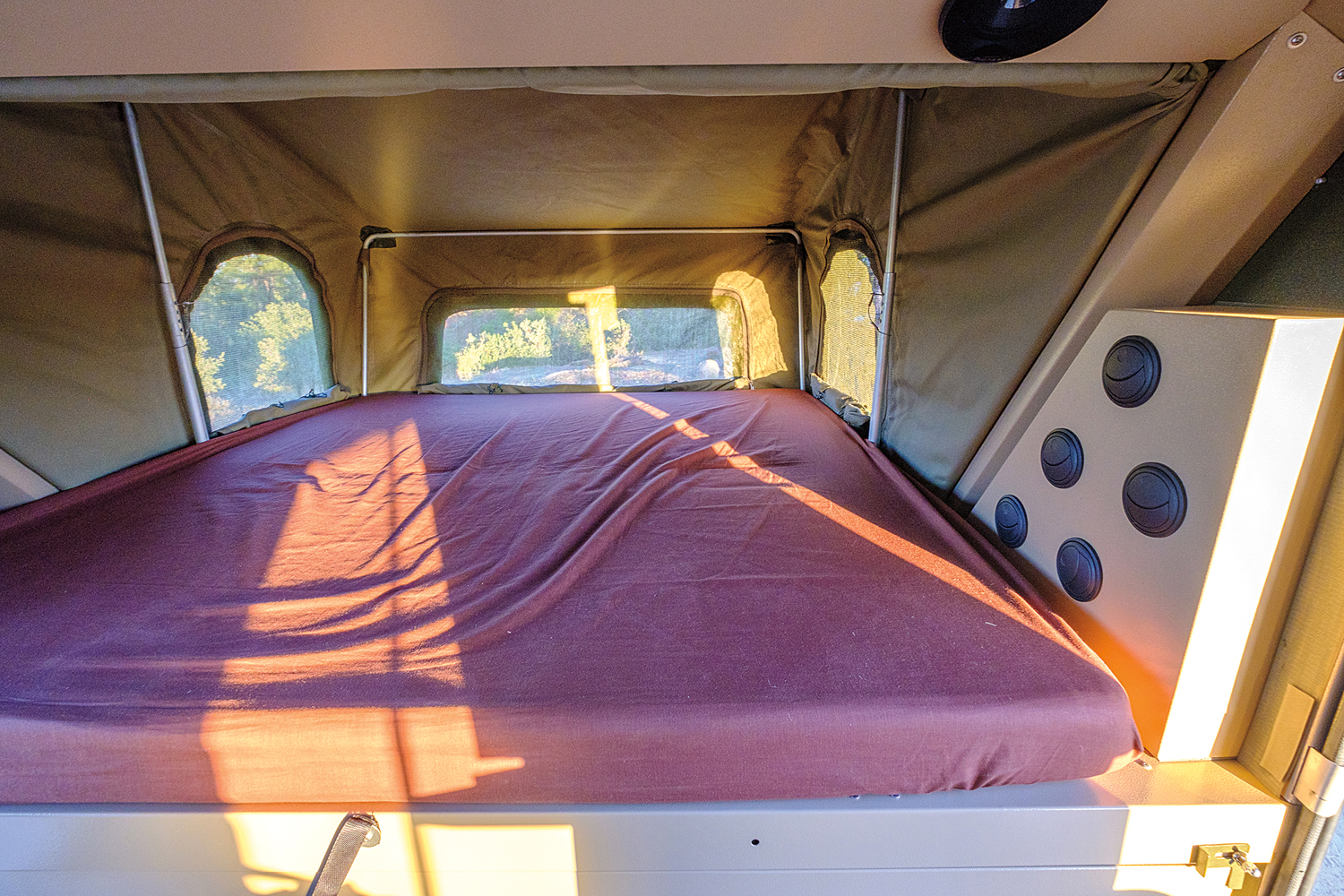 The Eezi-Awn Globe Tracker tent equipped on our test trailer operated on a similar plane of efficiency. It can be deployed and stored without Herculean efforts, and for the massive amount of space it provides, the setup and breakdown times are shockingly fast. Add its thick mattress into the mix, and it’s easily one of our favorite tents from the test.