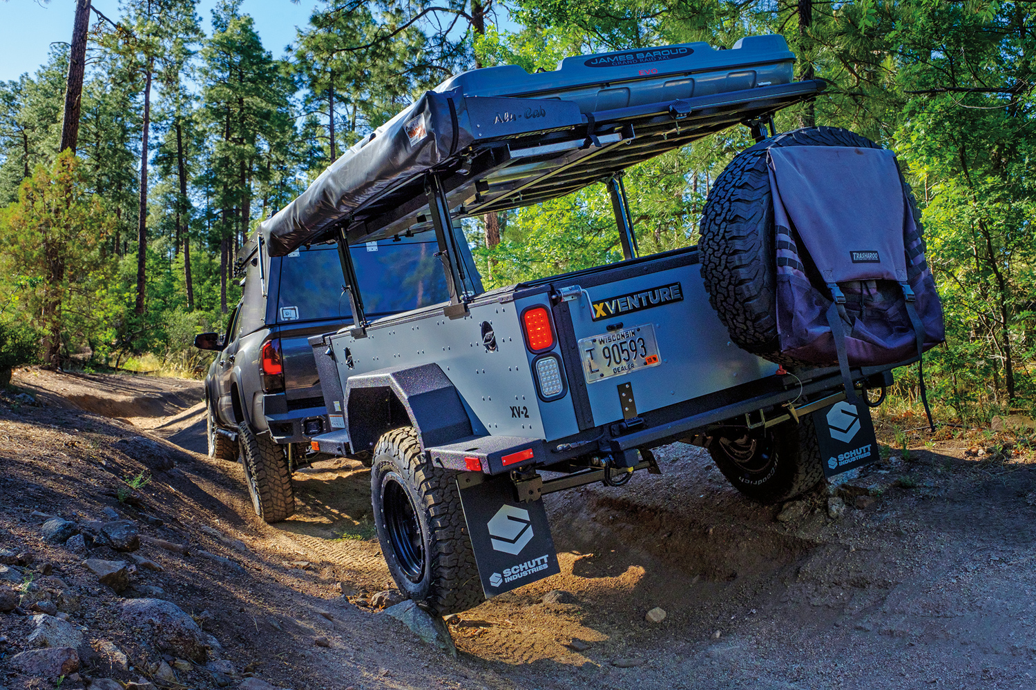 Schutt Industries has a long history of producing extreme- duty cargo handling equipment for every branch of the US military, their trailers in use behind Humvees and medium-duty transport trucks. This built-to-purpose philosophy has extended to their consumer line of overland models. Their construction methods are unique, employing the use of an aluminum structure and Alcoa’s HuckBolt fasteners instead of welding. These bolts have a 5,000-pound sheer strength and do a better job of retaining critical coatings and ensuring repairability of every panel and chassis member.