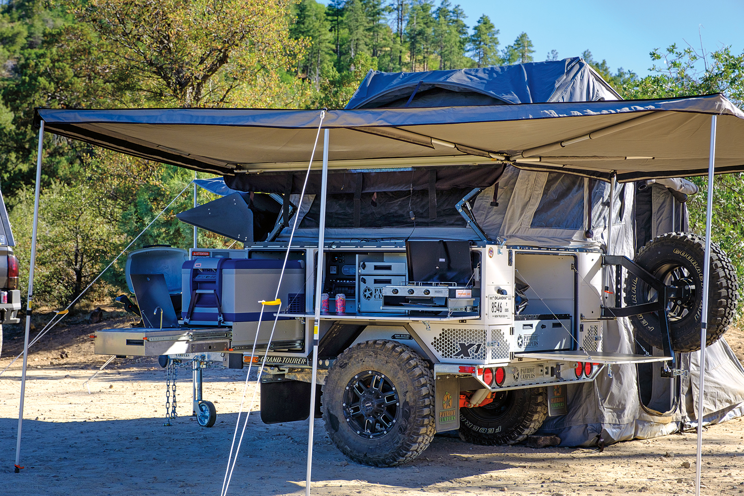 The goal of this Overland Trailer test was to weight objectivity and repeatability over subjectivity and personal bias. We are all biased, but in a test like this, it is the data and category assessments that allow a traveler to make the best decision. For this, Patriot’s X1 is the clear winner, combining world-class quality and durability with unmatched on-pavement and off-pavement towing performance. It also provides the widest range of camping options: a sub-10-minute base setup to a literal Taj Mahal of canvas that would sleep six. The attention to detail is overwhelming, from a mechanical parking brake to a swing-out barbecue. The suspension levels with two switches and they even provide visual leveling and ride-height indicators. The X1 exudes durability, its roots set in the remote tracks of the Australian Outback. The Patriot is the perfect choice for a family, or for travelers with smaller SUVs and a lot of gear. It is also the ideal basecamp in the Desert Southwest, equipped with all the comforts of home, even a ladder to the “second story” loft, complete with a spring mattress. It is the deserving champion, ready to follow your favorite adventure vehicle to points unknown.