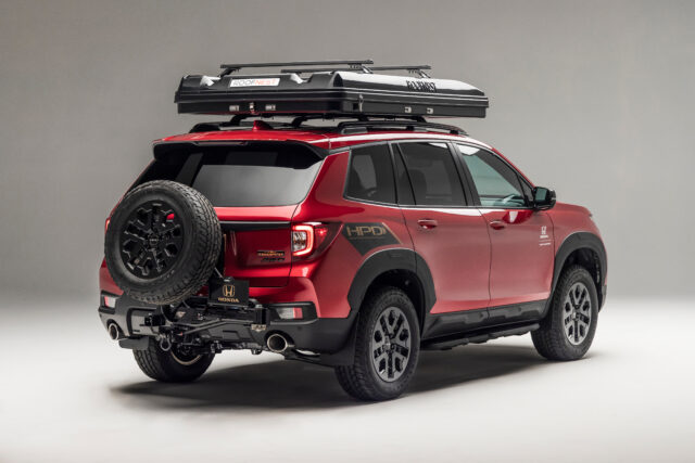 For overlanding enthusiasts looking for rugged adventure, the Honda Passport TrailSport Rugged Roads Project 2.0 features off-road components that further advance the off-pavement capability of the new 2022 Passport TrailSport, without sacrificing the Passport’s excellent road manners. Based on the Passport TrailSport Rugged Roads Project, the trail-ready SUV is ready to go off the grid with Honda Genuine Accessories, a Jsport suspension lift kit for more ground clearance, and rugged Firestone Destination A/T2 all-terrain tires for improved off-road traction.
