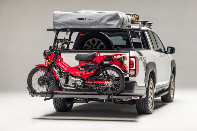 Custom-built by Honda and fully equipped for overlanding, the Ridgeline HPD Trail Tour Project is based on the popular and well-reviewed production 2021 Honda Ridgeline 4WD with the HPD Option Package. The pickup project is rugged and adventure-ready with bed and rooftop accessories from Thule and a custom spare tire carrier from Jsport. The Ridgeline HPD Trail Tour Project’s off-road capability is further improved with recovery points, stainless-steel underbody skid plates custom designed and fabricated by Honda R&D engineers, a Jsport suspension lift kit, and Firestone Destination A/T2 all-terrain tires.