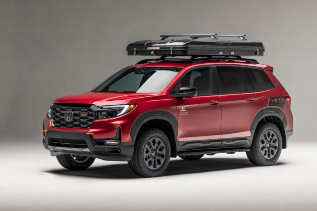 For overlanding enthusiasts looking for rugged adventure, the Honda Passport TrailSport Rugged Roads Project 2.0 features off-road components that further advance the off-pavement capability of the new 2022 Passport TrailSport, without sacrificing the Passport’s excellent road manners. Based on the Passport TrailSport Rugged Roads Project, the trail-ready SUV is ready to go off the grid with Honda Genuine Accessories, a Jsport suspension lift kit for more ground clearance, and rugged Firestone Destination A/T2 all-terrain tires for improved off-road traction.
