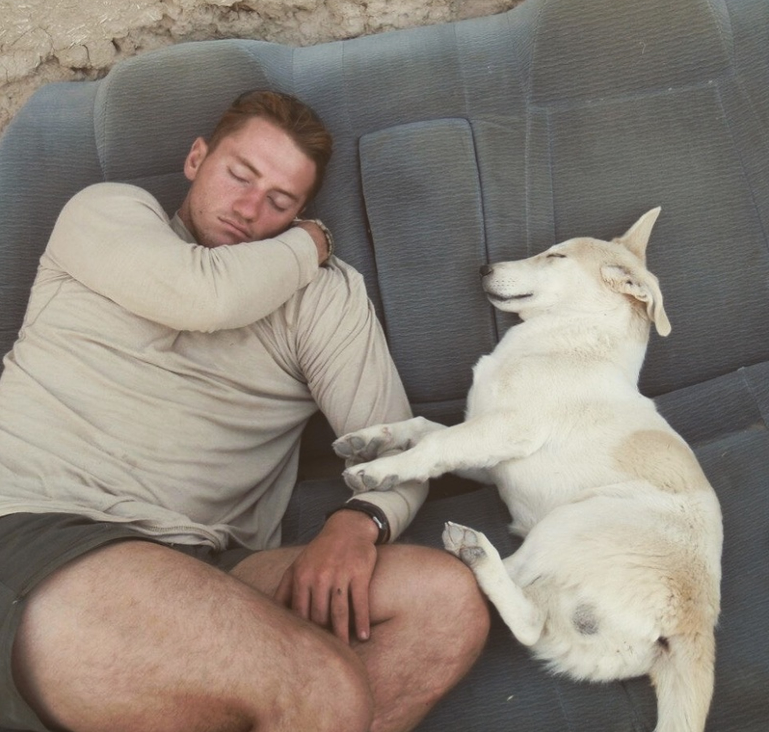Their assignment eventually ended, and Craig saw an opportunity to save Fred, who would have most likely died had he been left to fend for himself in Sangin. Craig smuggled Fred back to Camp Leatherneck in a duffel bag on their extraction helicopter (HIGHLY illegal) and did his best to hide him in plain sight while getting all of the customs paperwork in order with the help of DHL who had an office on their base. The DHL guys even looked after Fred when Craig had to return to Sangin just a couple weeks later.