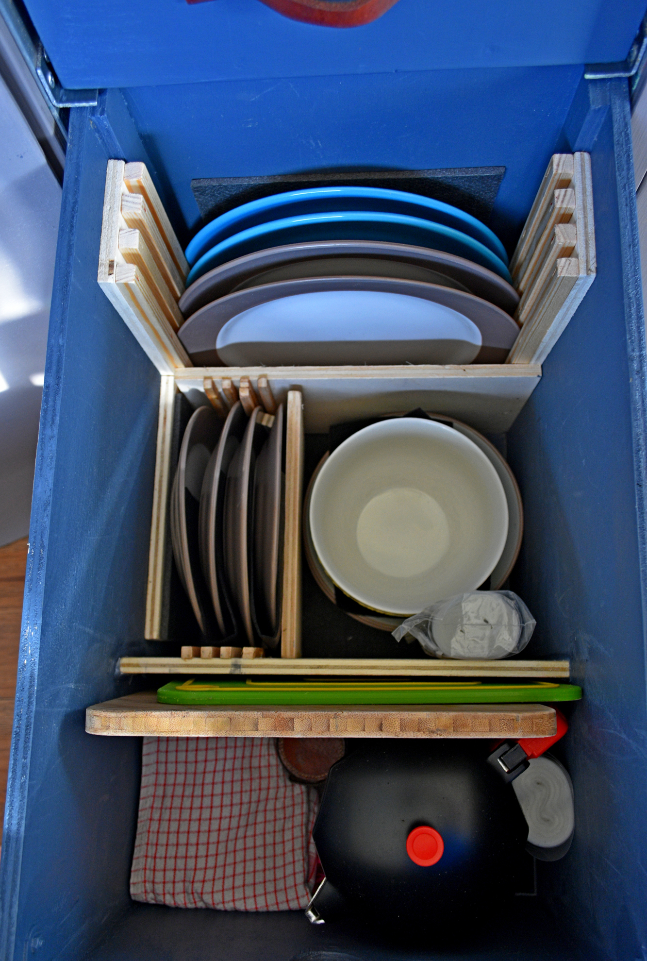 Depending on the size of your vehicle, you might want to invest in an electric cooler or a fridge. We swear by the Engel and SnoMaster fridges but have also used a Waeco one for quite a few years. In fact, we have used both an Engel and a Waeco at the same time. The travel models available are more expensive than the fridge you use in your home and draw the most electricity out of your vehicle. It is wise to consider installing solar panels on your vehicle to help generate the power for your fridge, though this is not completely necessary as one, or even two fridges can be run efficiently off a secondary auxiliary battery, provided that the state of cool in the fridge and the charge in the battery are maintained correctly. A fridge allows you to enjoy a cold drink and a steak at the end of a long day on the road but is not ideal for the storage of most vegetables. Vegetables need to be stored in a wellventilated area, and dry foods, spices, canned goods, peanut butter, etcetera should be kept in a dry foods crate.