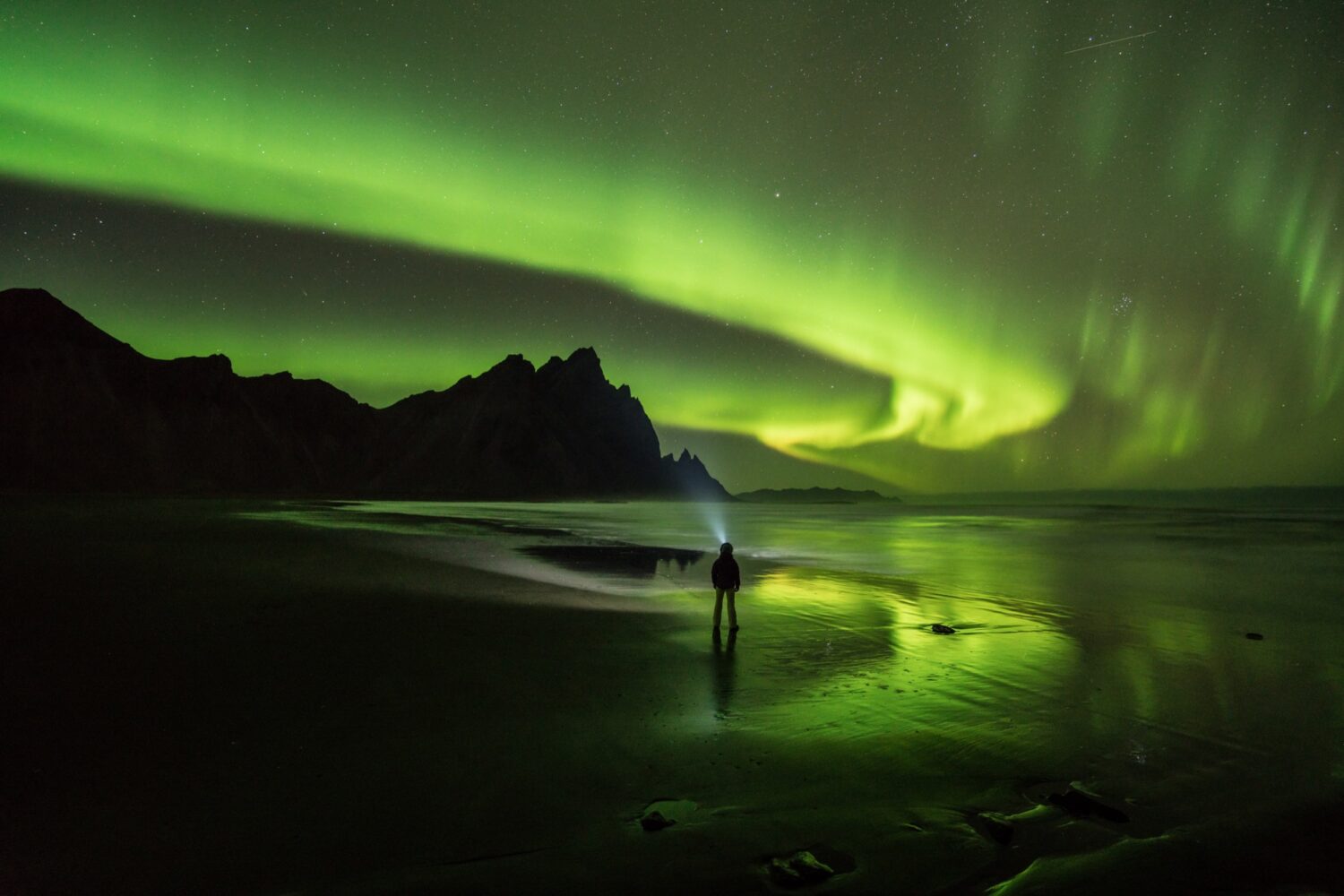 When photographing the aurora’s great curtains of green fire in vivid colour and sharp detail, keep refining the settings as the shafts of light change colour, brightness, and speed—strobing from one horizon to the next. Notch the ISO up slightly if your exposure is too dark but watch for noise creeping in. Avoid raising the ISO to achieve a brighter image before opening your aperture to f/2.8 (or your camera’s widest aperture). That, with a bit of luck and persistence, you’ll be ODing on shooting the emerald light show. Framed in a beautiful capture, you can forever preserve the northern lights as the celestial phenomenon that it is.
