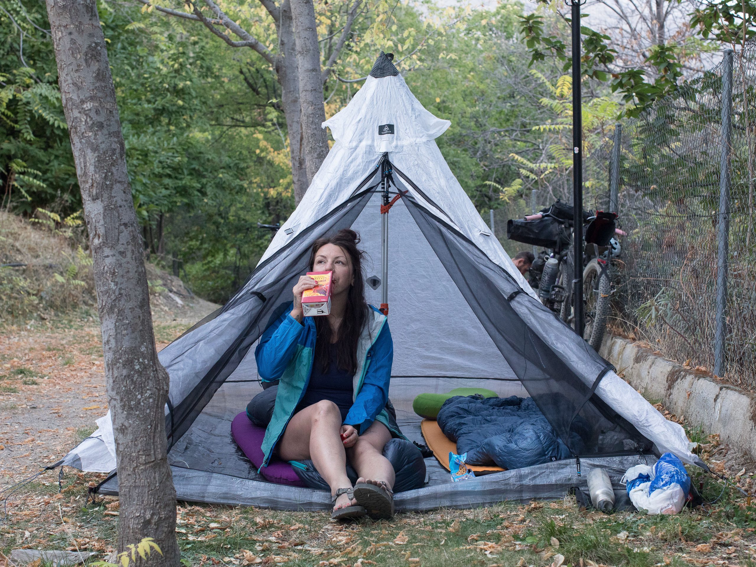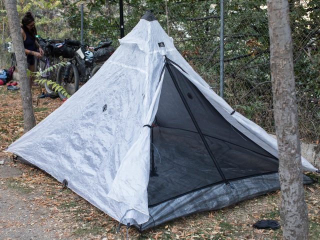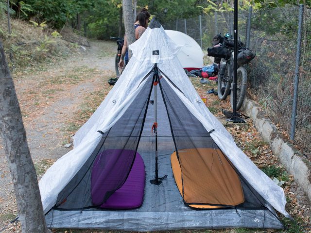 A freestanding tent is arguably just better for the most part but will generally take longer to pitch. If your absolute priority is saving weight, then the Ultamid is not the best option on the market (unless you’re planning to just carry the outer shell, which is 534 grams). Due to the generous dimensions, there’s a lot of fabric to store, and this means two packed-down dry bags (if you opt for both outer shell and insert), which takes up a considerable amount of space if you’re backpacking/bikepacking. Lastly, in some countries, you might want a tent that blends in as much as possible with your surroundings, and even in Hyperlite’s ‘Spruce Green’, the Ultamid’s height does make it stand out in wide-open spaces.