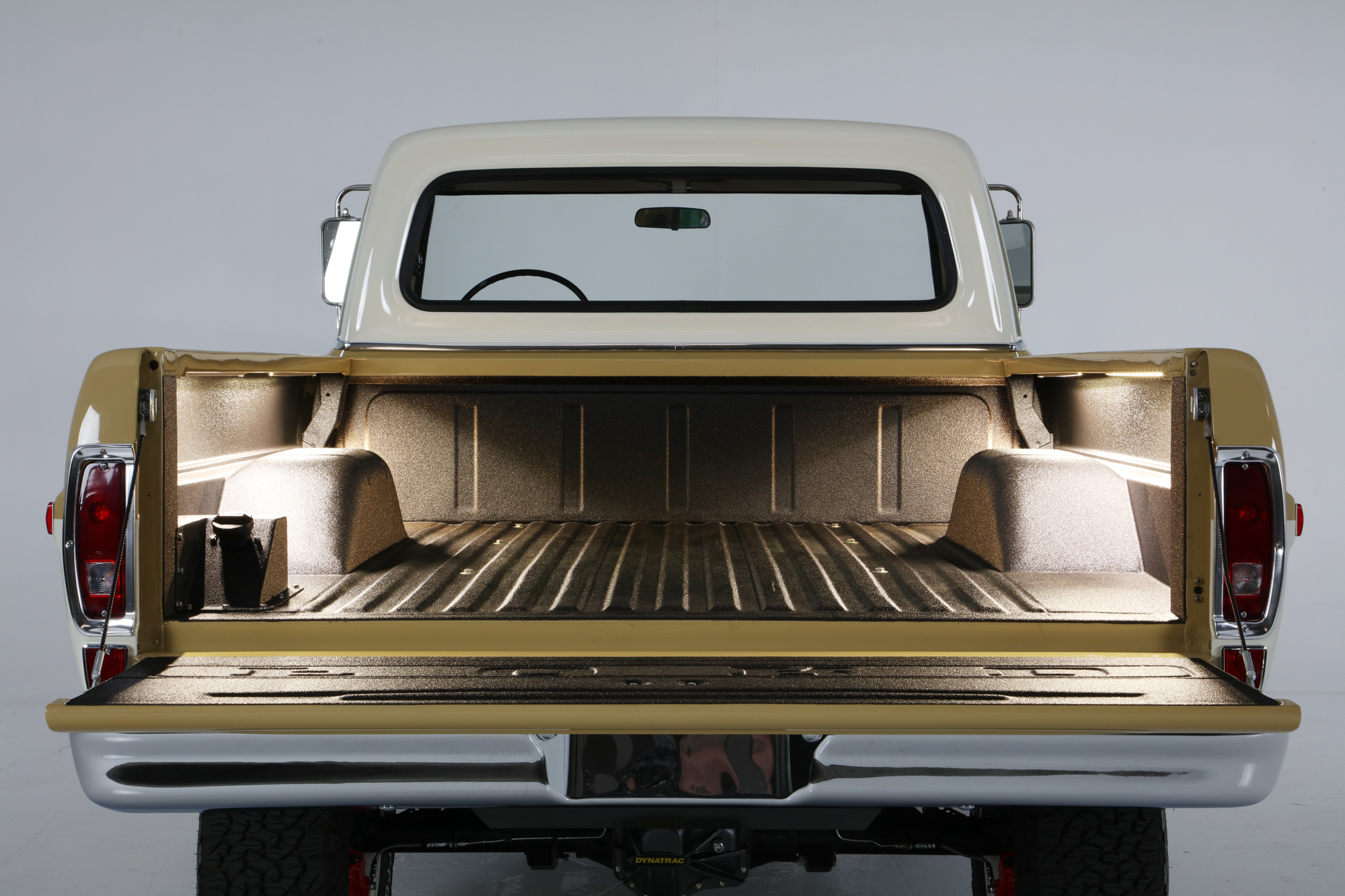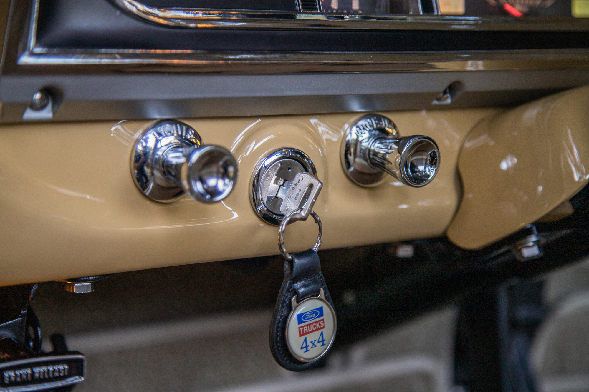 Rest assured that the interior finish of the Ranger is also high quality. It’s fitted with bespoke aluminum and chrome knobs and bezels and Dakota digital gauges. A brand-new Vintage Air Gen IV HVAC system keeps things comfortable, but (at the customer’s request) the manual windows retain an authentic 1970’s pickup experience. Maharam textiles and custom leather from Relicate complete the interior finish by perfectly matching the original Ranger’s factory vinyl.
