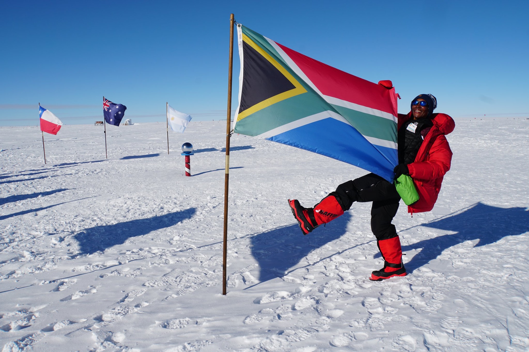 After three attempts, a ton of grit, determination, and perseverance, Khumalo became the first black African woman to summit Everest on May 16, 2019. A mere eight months after that, she became the first black African woman to reach the South Pole.
