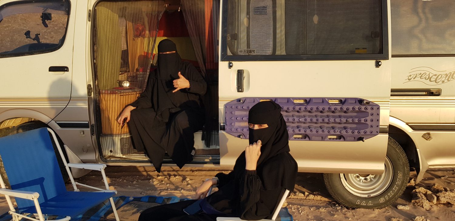 Another thing you’ll find is they push you off to the side of the road and stop there. [You’ll find this is] because they want to invite you to their homes. A policeman came driving up [behind me] with his horn and siren on, and I thought, “Oh, my god.” It took him a while, but he arrived with a little cup of coffee and said, “Welcome to Saudi.” I was invited into Bedouin camps and taken on falcon hunts and on camels and horses. They took me to their homes; they showed me everything. They repaired my car and filled up my gas bottles for free—men and women alike.