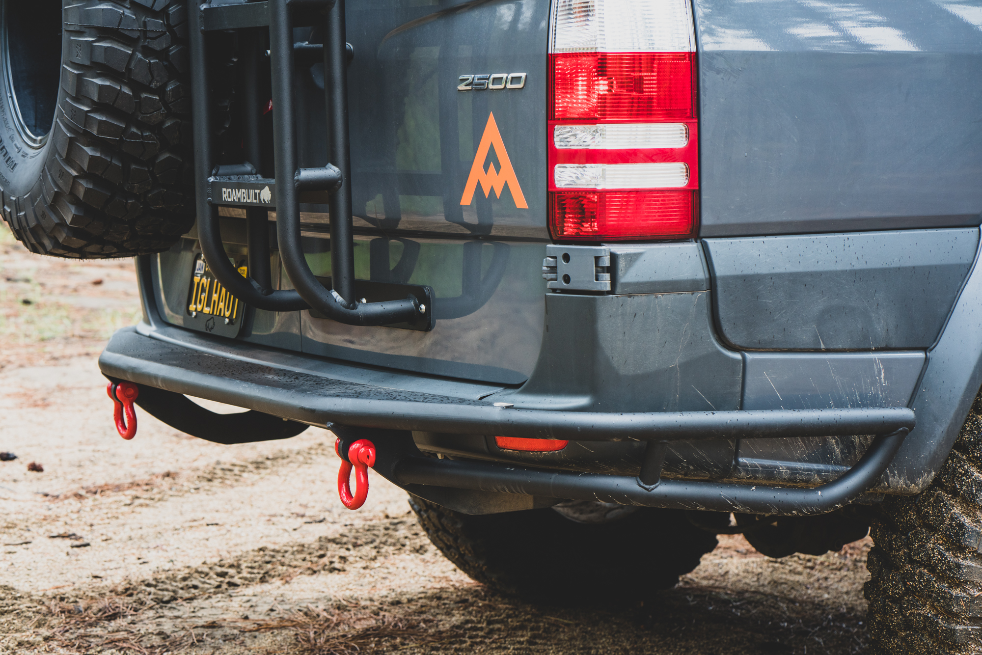 The Roambuilt bumper does a nice job of protecting the rear quarter panel and the factor plastic bumpers. Integrated tow/recovery points are worth noting, as is the Warn winch fitment.