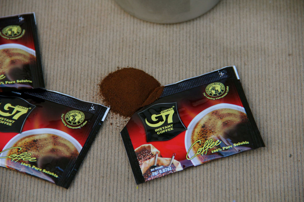There are a number of Asian manufacturers locked in a death match for the title of “Best Instant Coffee.” If I had to pick a favorite, it might be the curiously named G7 coffee from Vietnam. Said to be Southeast Asia’s favorite instant coffee (by G7 themselves) this coffee is never freeze dried or concentrated. They’re quick to point out that this coffee is produced in a ten million dollar facility, so perhaps that’s the secret. I wonder if it’s the added maltodextrin that gives it a rich viscosity, just as it does in good beer. The amazing thing about G7 is how little coffee they fit in the micro-packet. Probably too little, as I found I needed about two packets per eight ounces of water. The very fine powder dissolves instantly and provides a quality of flavor I might say trumps the Starbucks Via coffees. Their 3-in-1 coffee is the best 3-in-1 in my opinion. G7 mixes up with a really impressive crema, although it fades rapidly.