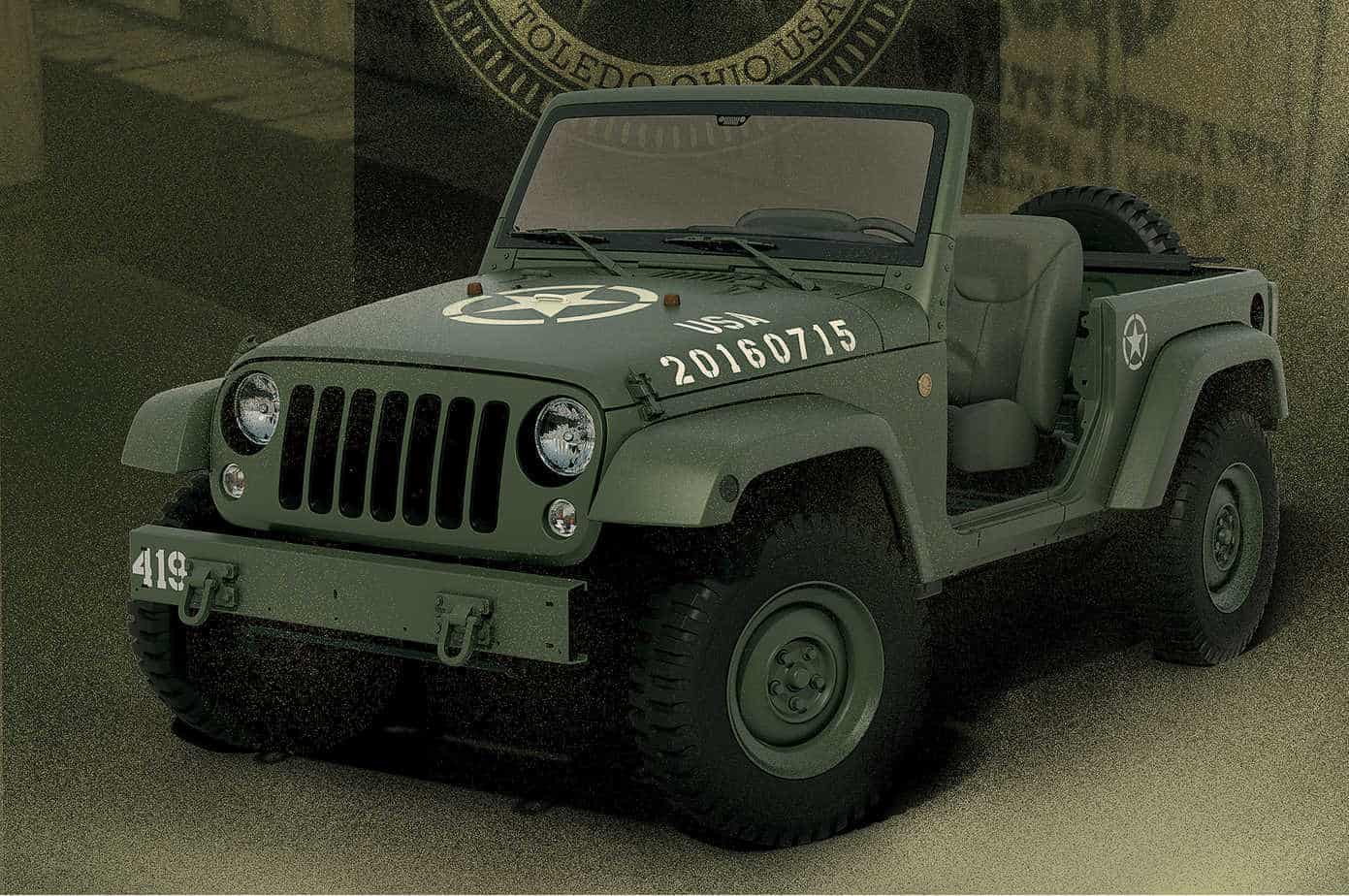 The goal was to make it as close to the original as possible, so FCA approved a few additions that you can’t get on your standard JK (sadly). They used a special OD paint scheme on both the body and fenders, installed heavy-duty steel bumpers and wheels, non-directional tires, and even swapped to a unique interior that screams 1940s military grit. Of course to do things right they had to remove a few things as well. The doors and roof were easy, but they also removed the roll bar which drastically changed the look and gave it the final push back to its roots.