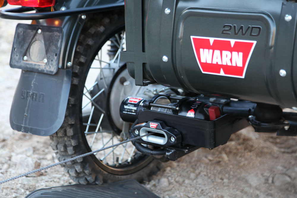 The Ural Gear Up is a formidable machine. Its secondary driving wheel, broad stance, grunting power, and tank-like construction make it capable of traversing seemingly impassible terrain. That doesn’t mean it is without limitations. The dry clutch and tall first gear can be challenging, and its size often conspires to bring progress to full stop. For a solo traveler, these are heady considerations when faced with what could be a route-thwarting obstacle. That is unless your Ural Gear Up is fitted with a Warn winch.