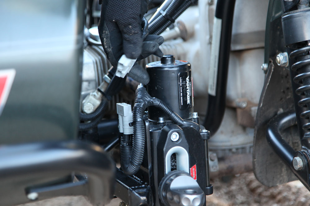 In testing, operating the winch and controlling the motorcycle at the same time didn’t prove to be overly complicated. The switch is easy to actuate and doesn’t conflict with the operation of the motorcycle itself. The Warn ProVantage pulls with a slow and deliberate pace and the central location of the winch on the motorcycle keeps everything balanced and doesn’t compete too much with steering inputs or suspension compression.