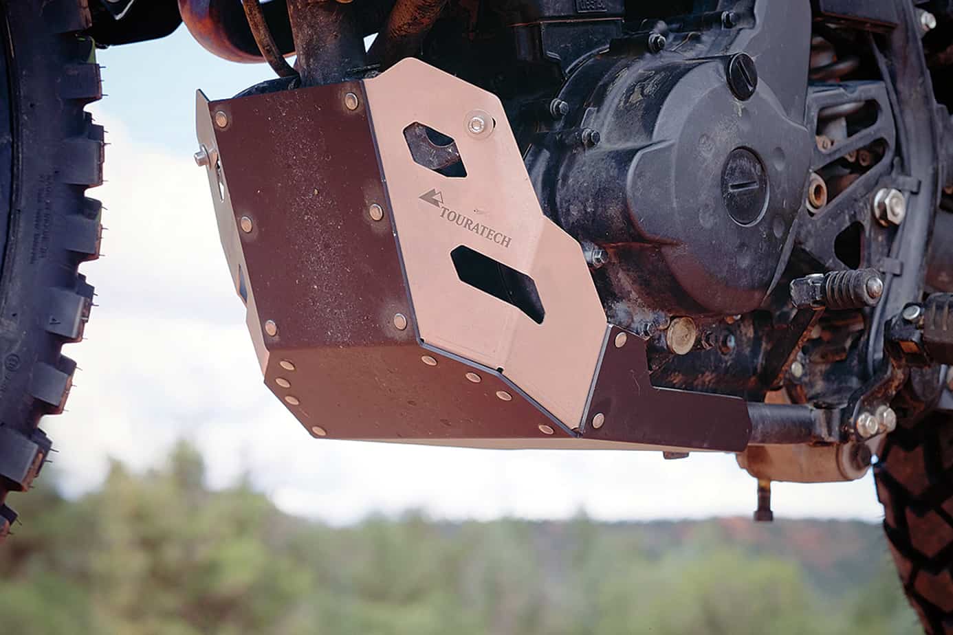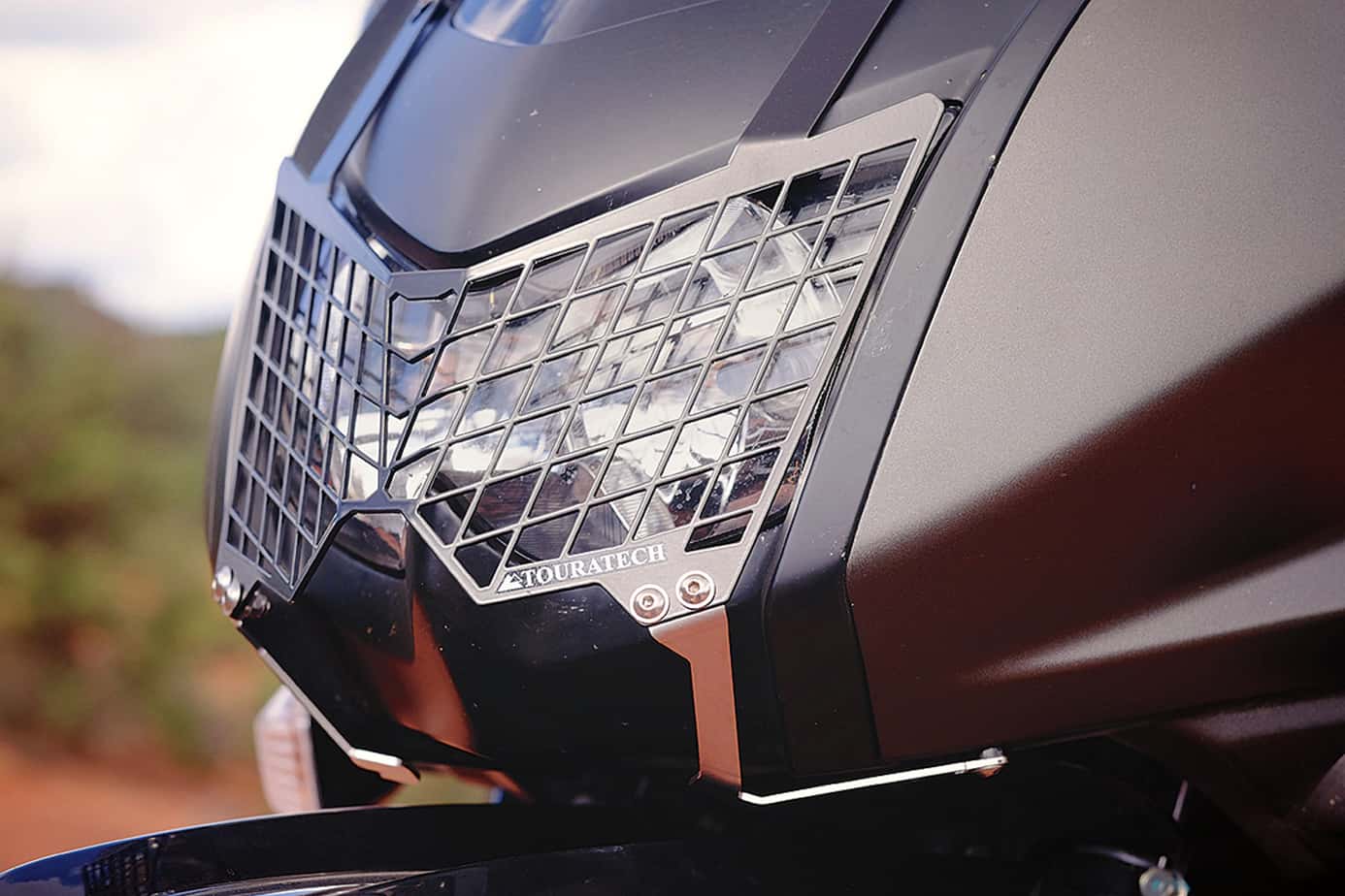 Further trail modifications included safeguarding the engine by replacing the stock plastic guard. There are many options for the KLR, but we have found that Touratech skid plates strike a good balance between weight, total coverage, and impact durability. The aluminum model looks great and installed easily, fitting tight against the chassis for maximum ground clearance. For additional protection we mounted a Touratech kickstand, headlight, and full coverage hand guards for brush and crash deflection.