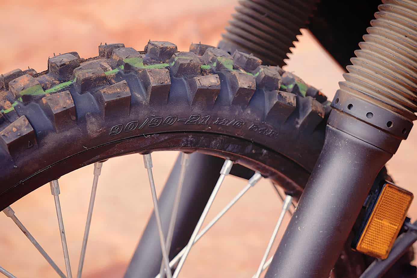 Starting from the ground up, we addressed one of the most important considerations for any ADV motorcycle: proper tires. The stock Dunlops defy most criticisms for dry terrain, demonstrating surprising levels of grip in the twisties as well as being quiet on the road. However, once the surface gets wet or loose, the factory treads find their limitations. We ran the stock tires to the end of their service life, then looked for the best replacements, seeking a high-grip front tire with a long-lasting rear. One of the biggest challenges to long-distance motorcycle trips is the rate at which rear tires wear. We chose Heidenau K60 Scouts, which are more aggressive than the stock tires and should easily last 6,000 to 8,000 miles on this light, low-power Kawasaki. For the front, we selected the proven Dunlop D606, which is manageable on the highway, yet has tenacious lateral and braking grip on the dirt. We tested this combination in deep mud and rocks on one of our local test courses and it did not disappoint, clearing the medium quickly, with enhanced traction and control.