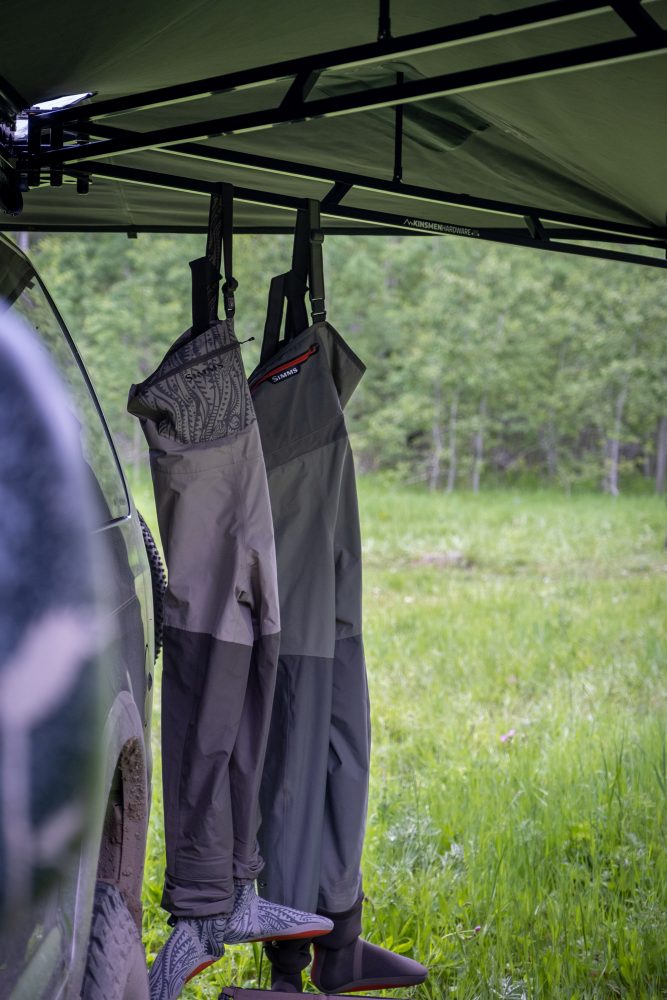 A few seconds here or there doesn’t equate to anything beyond bragging rights in camp, but the attention to detail on the Kinsmen, combined with its stability and strength, does. Unlike other awnings, I find myself deploying it multiple times per day on our trips. Coverage is ample at 167.9 square feet; I’ll throw it out for a lunch break, use it to shield the rain on a coffee stop, and open it to hang some lights for camp poker. If bad weather is forecast, the three pop-up arms prevent water from pooling and secure the tension strap to fight off the wind. Guyline webbing loops perfectly positioned on the fabric secure the awning and prevent flapping in high winds. There is even a spot for an aftermarket support pole in case you want to string a hammock up on the armature.