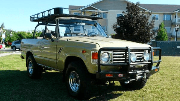 Okay… so I will admit that it’s a little weird, but despite the initial shock of seeing an FJ60 cut open. this car is actually pretty awesome. It was custom made for a doctor back in 1983, so in a weird way it almost counts as original. More recently, it was restored to its current state and from what I can see they did an excellent job. The tan paint is immaculate and doesn’t appear to have any damage or fading, the accessories are well chosen, and the interior looks like it just came off the show room floor. What’s more impressive though, is that despite the odds, they’ve managed to keep it from turning into the ostentatious monsters you usually see with chop tops. Yes the roof rack is excessive, but overall the build was executed with a fair bit of style. A mild lift is used with BFG mud terrains in an appropriate size, a classic looking ARB bumper adorns the front with round lights instead of LEDs, and an understated swing away bar covers the rear. Even the paint looks factory. The only thing I’d like to see that unfortunately wasn’t pictured, is the full length soft–top.