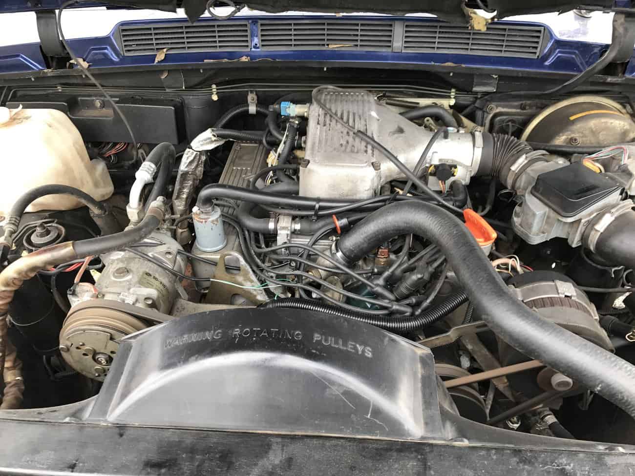 The deep blue paint appears to be the original and all body panels look straight and corrosion free. The interior is worn from normal use, but free of tears with minor stains and scuff marks appearing on the foot pedals and floor mats. An aftermarket CD player replaces the factory radio. The dash plastic looks clean and crack free and the shifter boots look as if they are brand new. The driver’s door handle bezel is missing and there is some light scuffing on the panel. The seats transmission and windows are all manual, a rare triad these days. Believe it or not, the factory air conditioning is also functional.