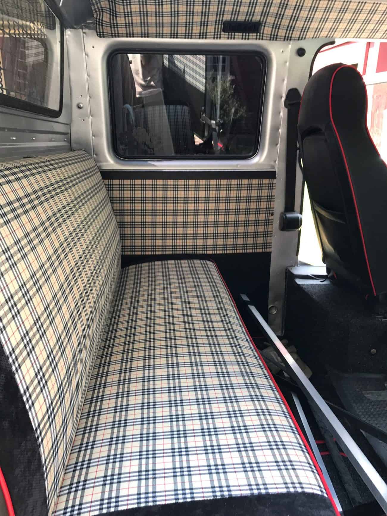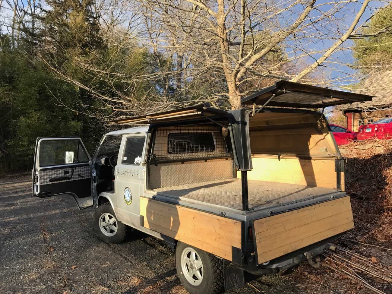 As to the overall condition of the body, I’d have to say it is quite good. There’s zero rust, and the paint is probably an 8 out of 10, having been completely redone just 3 years ago. The interior is brand new as well, and I have to admit I really dig it, especially in person. The plaid fits the vehicle perfectly, and the overall quality feels factory. The pickup bed is all custom and seems to be at least 6 years old. The canopy and sides are all very well made and tough as can be. It’s “very cool and very field friendly” according to Bruce. I’d have to agree.