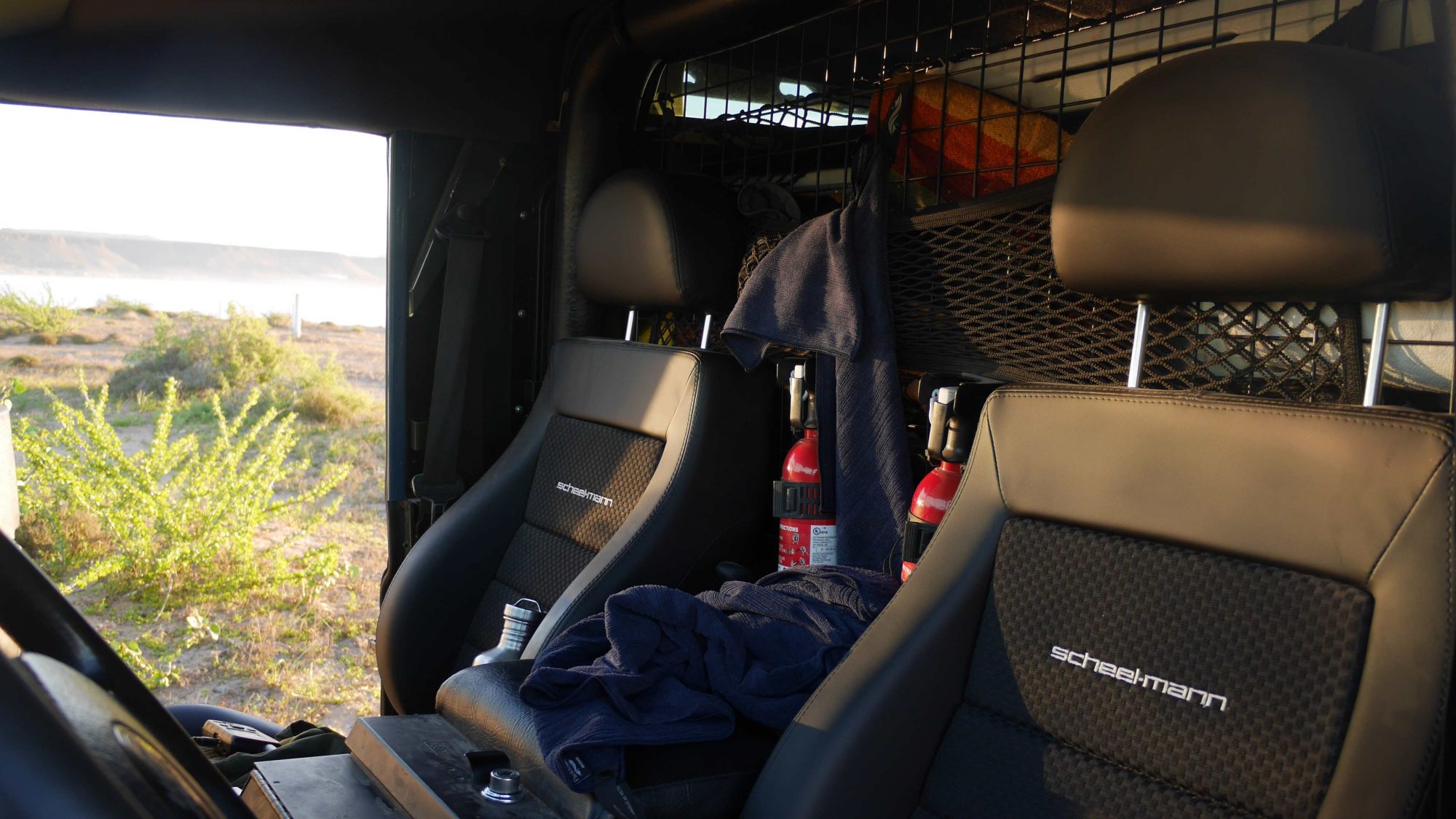 Scheel-mann seats. (Link: http://scheel-mann.com) You’ve probably never heard of them and I don’t blame you. This lesser-known German brand makes the most comfortable seats I have ever sat in. Defenders aren’t exactly known for their comfort so a seat upgrade is money well spent when you’re on the road. I had my set installed before I did my 4,400-mile road trip to Baja (Link: https://dev.expeditionportal.com/48765-2/) and boy, am I glad I did.