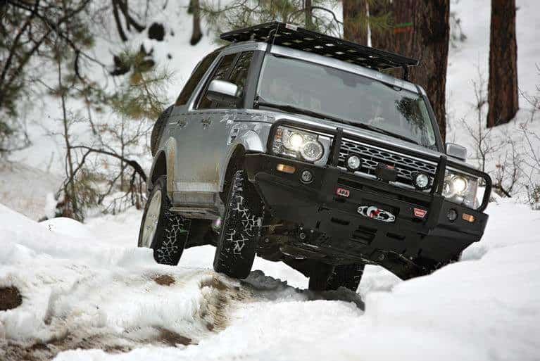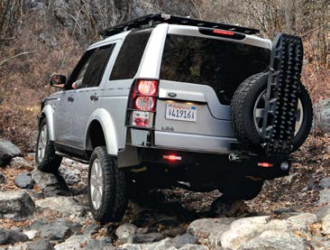 For the rear protection we installed the tried-and-proven Kaymar swing-out bumper, designed and tested in Australia. With considerable personal experience using their bumpers on both Land Rovers and Land Cruisers, I was reasonably confident the Kaymar unit would be what we needed. The tire mount is always the Achilles heel of these bumper systems, but Kaymar seems to have discovered the secret formula. The bumper fits in place of the factory’s plastic unit, following the existing contour. This was no easy job for the Australians, but the end result is sturdy and complimentary. Glancing at the side profile, the vehicle’s appearance and stance changed completely, and I am particularly fond of how the spare tire now covers the awkward dip in the rear liftgate window. We finished off the rear with a set of four, black, Maxtrax traction devices, which are mounted to the spare tire. While brakes have improved dramatically in recent years, so has the size of brake calipers. The LR4, with its excellent brakes (large brake rotor), requires a rather large diameter wheel, thus a lower profile tire and less flotation. A device like the Maxtrax may come in handy to augment traction and reduce vertical load force in soft conditions like mud and sand.