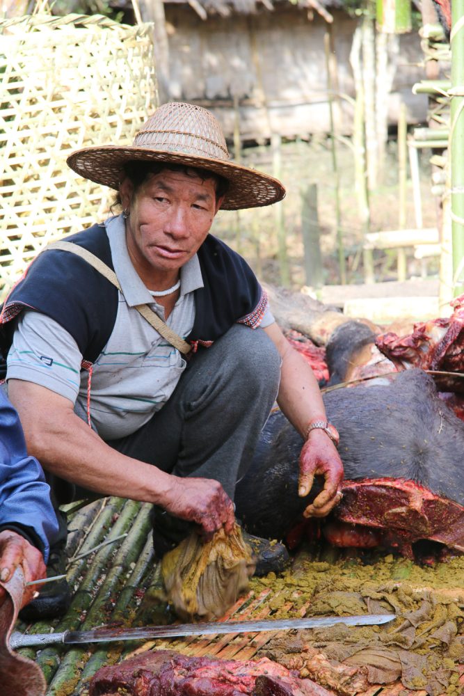 After a while, the chief igu walked to where six male mithun were tied to trees, chanting as he brushed their backs with a leafy branch. Then, in turn, each animal was slaughtered, men bringing their swords down on their muscular necks. The mithun fell silently to the ground, but it was an agonising 20 minutes before they let out their final, rasping breaths and died. As much as I’d felt it polite to watch, the scene tore at my vegetarian sensibilities: I could feel the bile rising in my throat, my stomach churning in revolt. Gagging, I slipped away and vomited behind a tree.