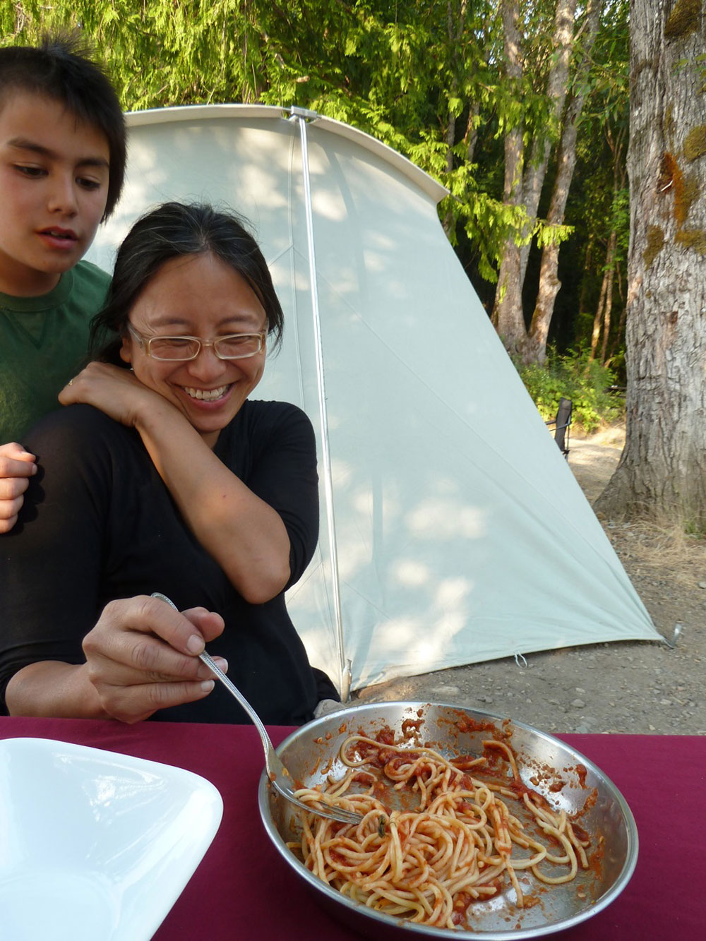 The other mom and I both spent our younger years growing up on an island. Now living inland in British Columbia, the one thing we both wanted was the ocean. We missed the waves and wanted our children to experience them while camping. Imagine our shock and horror when we discovered that in order to camp by the ocean, it would cost each family almost a hundred dollars one way by ferry to get to the island we chose. Refusing to succumb to daylight robbery, we revisited our camping goals. We finally decided on camping closer to home, but by a large lake, not the ocean. We reasoned that we actually live in “vacation land”; city folks drive to where we live to spend their holidays. We did not need to spend money and drive long distances unnecessarily for us to camp. Our new campsite was about half an hour from where she lives and an hour and fifteen minutes from where I live. It worked for us and let me tell you, the morning I drove to the campsite, I was grateful I was not driving three hours to get on a two hour ferry and then driving another two hours.
