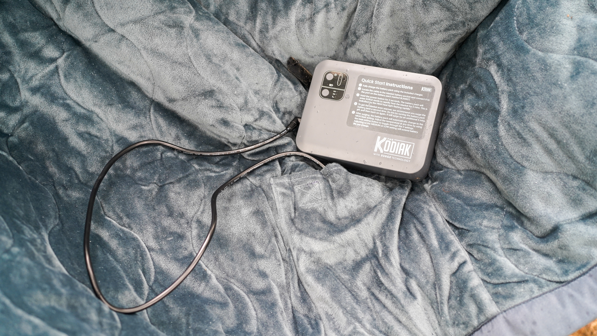 The most striking thing about this heating blanket is how warm it makes you without feeling hot. Many heating blankets provide inconsistent heat, where it’s hot enough to burn your skin in some spots and cold in others. The Kodiak doesn’t do that. This blanket gets uniformly warm, with no areas too hot to touch, even on bare skin. It won’t feel hot if you touch a blanket section with your hand. But when it’s draped over you in a cold environment, it will keep you warm.