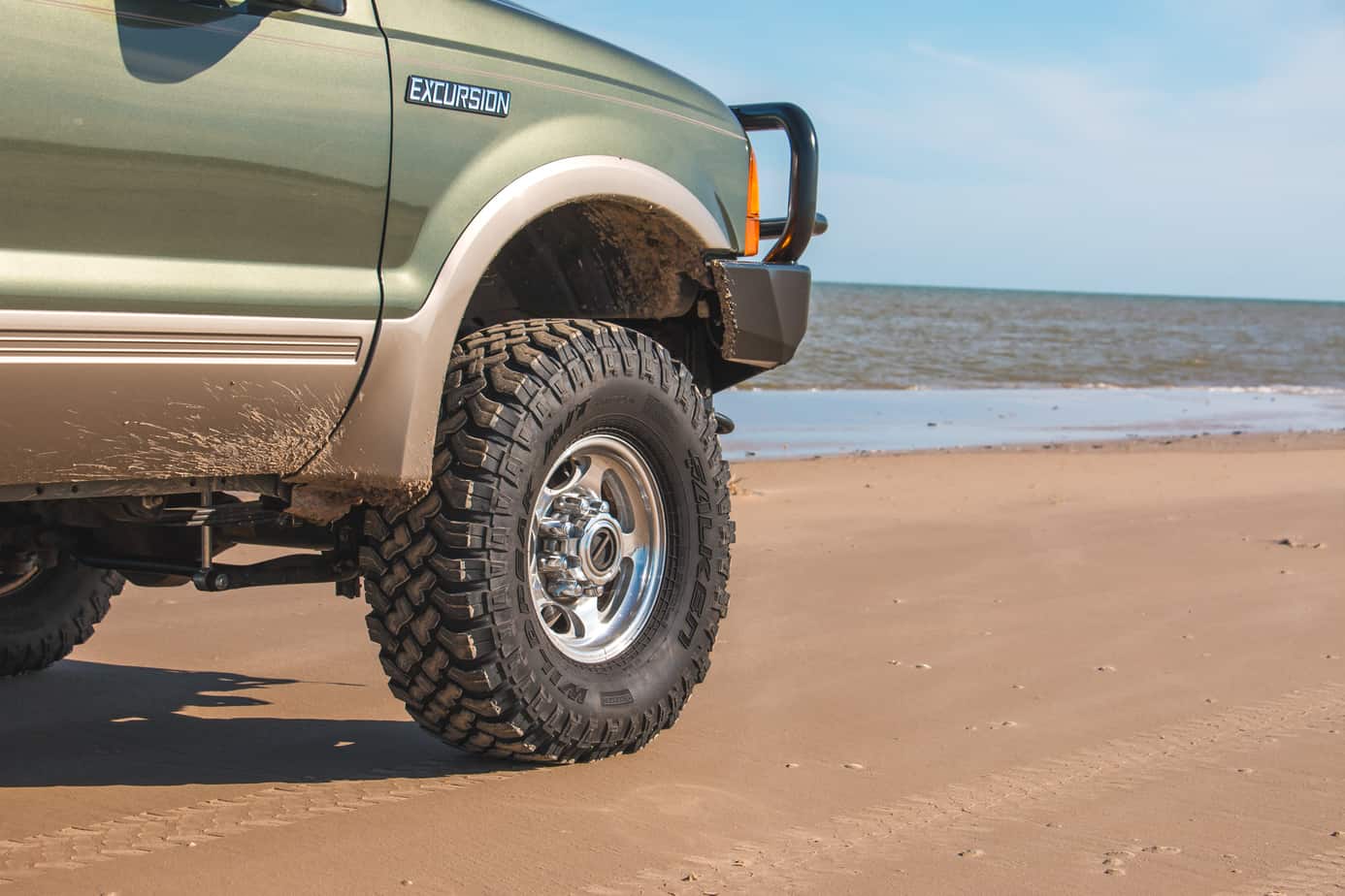 Mud performance is obviously excellent, and I’ve yet to encounter a situation that I couldn’t drive through with ease. As with snow, the grooves between the tread blocks clear out quickly, giving the tire a clean bite with each rotation. Their traction is so good that I went through an entire trip before realizing my Excursion’s four-wheel drive was not functioning, despite several mud holes and deep sand.