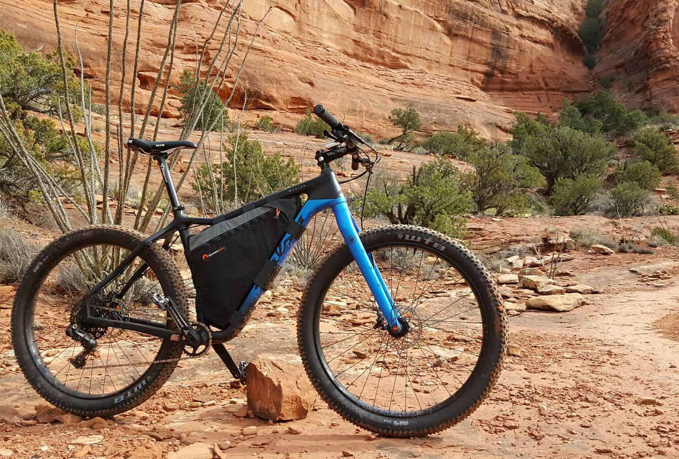 Without getting into the nitty-gritty of how they did it, the first step was to employ the most high-performance material available: carbon fiber. Carbon opens many design doors and allowed Salsa to shape the frame tubes in ways not attainable in aluminum. The use of a giant 197mm rear hub paired to the brand’s adjustable Alternator dropouts allowed the use of 5-inch tires on 100mm rims. Keeping the bottom bracket width to a minimum was no easy task but the 100mm spindle provides a reasonably narrow distance between the rider’s feet.