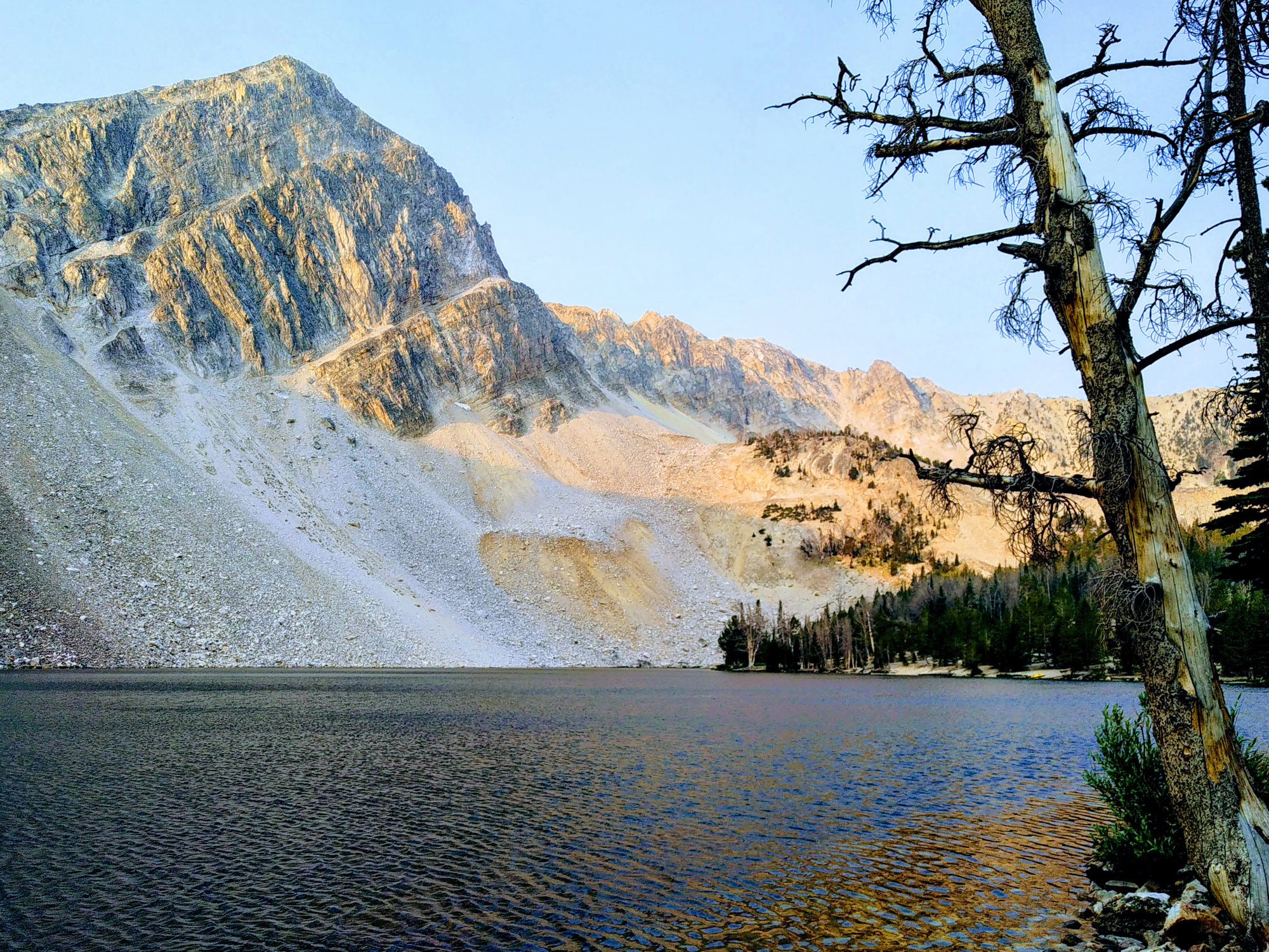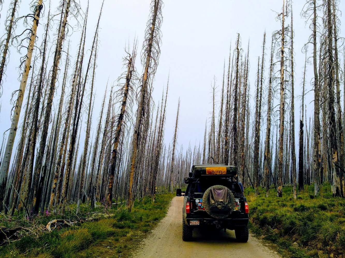 Camping at the top is possible, but we opted for the alpine meadow that sits about 1,000 feet below the top. As the wind howled through the fire-stricken trees, the evening brought a beautiful sunset atop this hidden treasure that can only come when adventuring this way. We felt grateful as we settled in for the night.