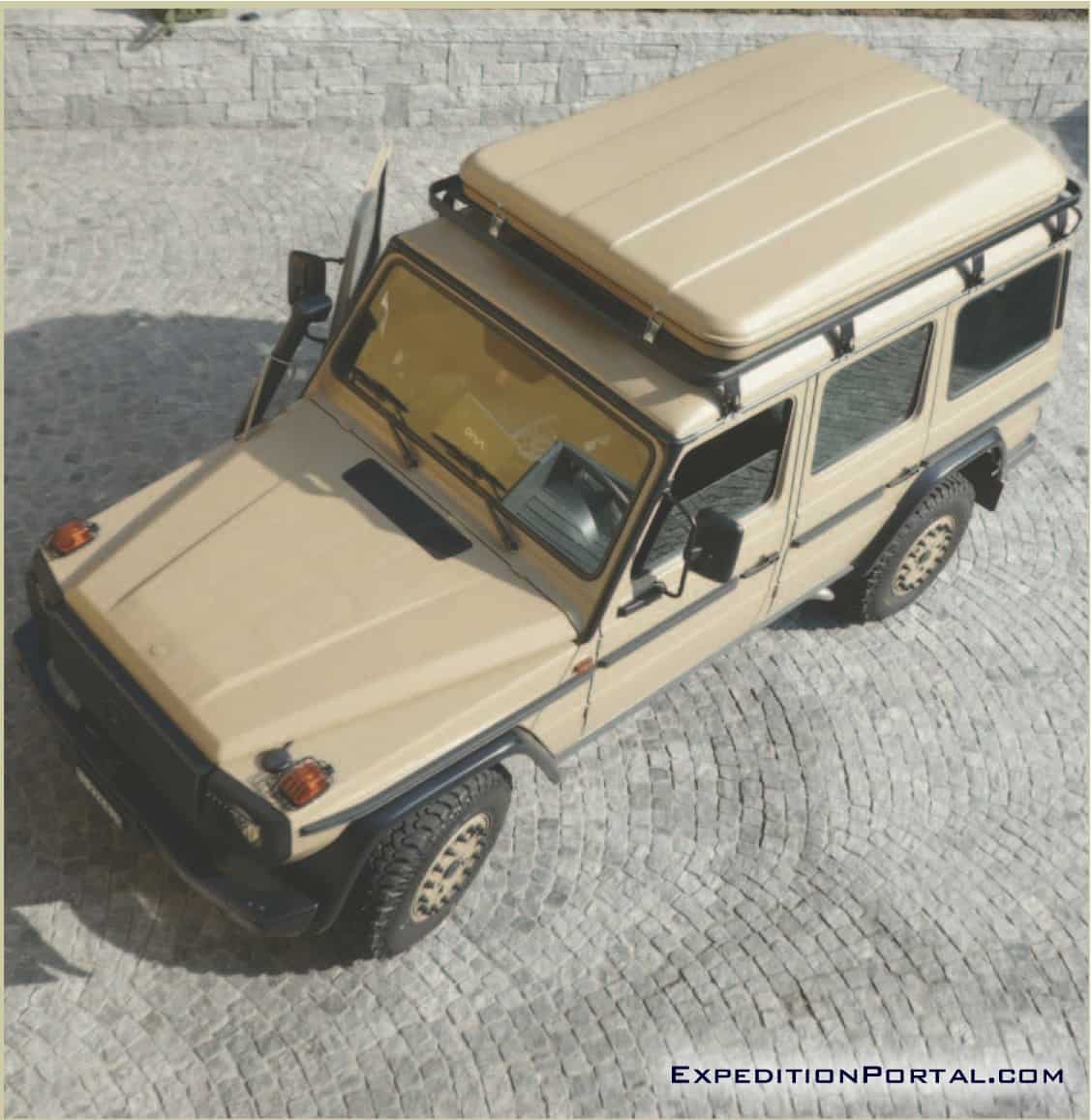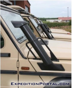 The air intake has been fitted with an original Mercedes-Benz snorkel (developed specifically for this G model) to allow deeper wading when crossing rivers and to supply less dusty air (due to its height) to the engine providing better efficiency and longer engine component life.