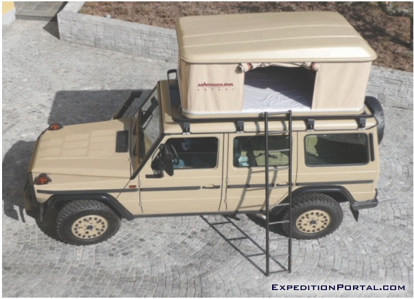 The South African specialist for “african terrain proof” roof carriers and 4×4 equipment, FRONT RUNNER, have produced a special model of roof carrier specific for this vehicle and for the Maggiolina tent. It is made entirely of welded and bent aluminum extrusions that are powder-coated to achieve a stylish and long lasting finish. Once again, every effort has been made to achieve a robust product with light weight, that is aesthetically pleasing.