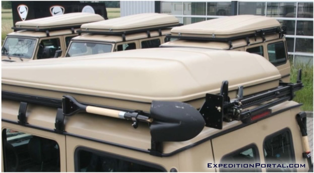 A hi-lift jack is neatly fitted to the side or as an option with different special custom made brackets to the rear of the roof carrier for easy, convenient access.