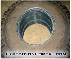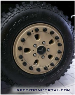 We have equipped the vehicles with special split rims fitted with beadlocks. These allow removing and replacing of the tire in the event of a puncture without have to remove the actual rim from the vehicle. Even more important, the beadlock allows reducing of pressure inside the tires to values as low as 0,5 bars without the risk of the tires slipping off the rim. This provides major traction advantages when driving in deep sand or snow.
