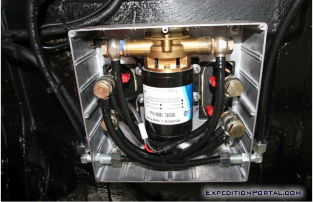 Filling of these 2 tanks is achieved by electrically pumping fuel from the main tank. This eliminates the possibility of any diesel smell during filling operation (or worse, as a result of spills), which often happens when the filling of auxiliary tanks has to be done from inside the passenger compartment. Safety ball valves are fitted under the floor of the vehicle to allow drainage and recovery of fuel even in the case of a main pump failure.