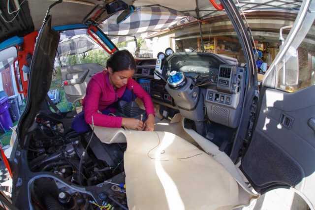 Raquel: A lot of friends made this van build possible. Whenever we say we or I, there was a friend lending a hand, a garage, tools, experience, and time. Mechanical, bodywork, living space—you name it—have all been done with the generous support of friends around the US. That’s one of the advantages of being on the road building relationships for over 12 years— meeting an eclectic group of very talented people.
