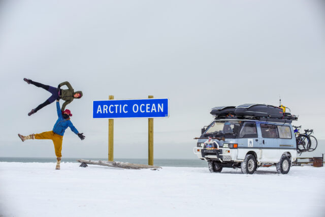 “We’ve had so many amazing adventures in the Delica, but one of the most epic was taking it up to Tuktoyaktuk in October. This was one of our biggest adventures; we were battling blizzards, a foot of snow on the road for hundreds of miles, and a lot of night driving. It was pretty wild but easily my favorite adventure. The journey through Canada toward Alaska is just breathtaking and showcases the most amazing wildlife and scenery. The shoulder season is ideal as there are fewer tourists, and the trucking season hasn’t quite started. We often use iOverlander and freecampsites.net to choose locations, and to be honest, we’ve been almost everywhere in the States. Pre-Covid, we hadn’t stayed anywhere for more than 28 days in over six years, and typically we relocate every three days, so we cover a lot of ground.