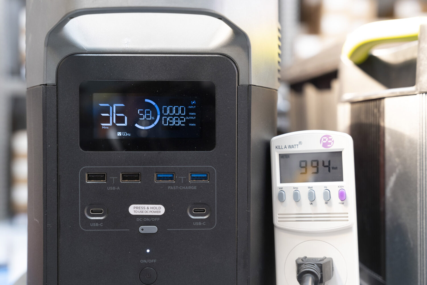 I’ve known about EcoFlow for a few years, but this was the first of their products that I’ve had the opportunity to test. The Delta is powered by a lithium-ion battery rated for 25 amp-hours at 50.4 volts. In our AC load test, it powered our 1,000-watt halogen light for 50 minutes before hitting our benchmark of 80-percent battery discharge. In the recharging test, the Delta blew me away, recharging from 20 to 100 percent in only 1 hour and 4 minutes.