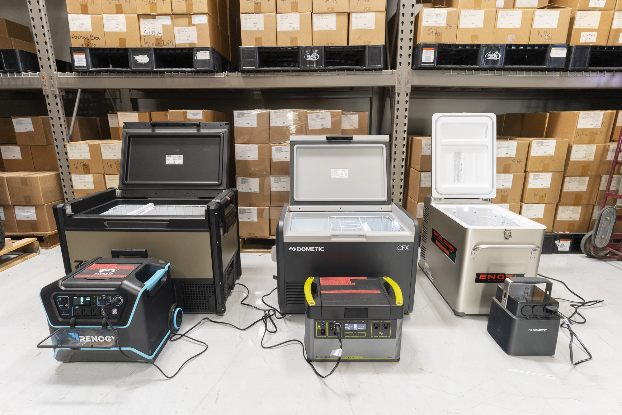 The National Luna auxiliary battery box allows you to use any 12-volt vehicle battery (although a deep-cycle AGM would be best) to create an off-grid power source. The battery is secured inside the box using the included hardware and hooks up to positive and negative cables—very straightforward. You get two USB-A ports, one 12-volt automotive outlet, and one 12-volt Hella outlet, with four more prewired 12-volt outlets which you can adapt to your needs. Because this device doesn’t provide AC power, and because the internal battery is supplied by the user, it didn’t feel appropriate to compare it to the items in our test. The National Luna is pictured above with the other battery boxes on the lower right-hand side.