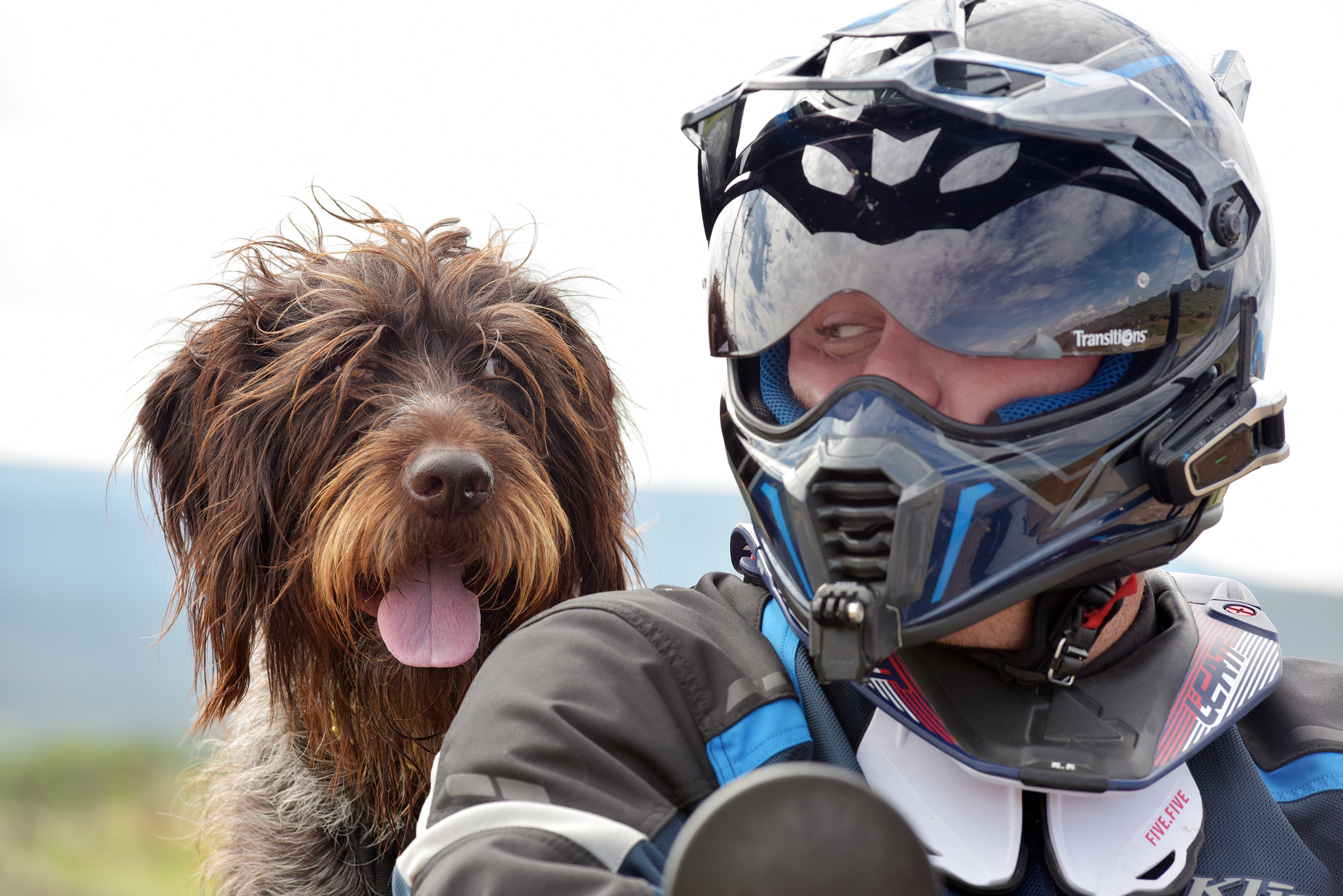 The couple says motorcyclists considering riding with pets need to closely examine what’s required. “It looks cool, and it’s neat and super rewarding, but it’s also a massive responsibility,” Scott says. “Much of what we do is driven by the dog, what trails are acceptable, if it’s too hot or too cold. He’s black and roasts in the heat. But even the decision on what bike to ride is driven by the dog.”
