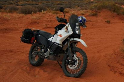 KTM Zweiradcenter Bernhardt in Germany has performed an impressive conversion the to KTM 450 EXC, a factory dual-sport motorcycle with a considerably bias towards short-distance technical dirt travel. The interesting result of Zweiradcenter’s modifications is a motorcycle better suited to long distance, remote exploration, with expeditions into the Sahara, the Road of Bones and even the Trans-America Trail all coming to mind. The concept of this platform has considerable appeal, combining the athletic performance of the 450 with additional range and greater rider comfort. The brakes are bigger, a rally computer has been fitted, along with 37L of fuel. The complete modification list is impressive, but additional oil capacity or improvements to the service intervals seems to be absent from the line-up. I could easily see strapping a Giant Loop bag to the back and ripping up the Skeleton Coast. Zweiradcenter Website