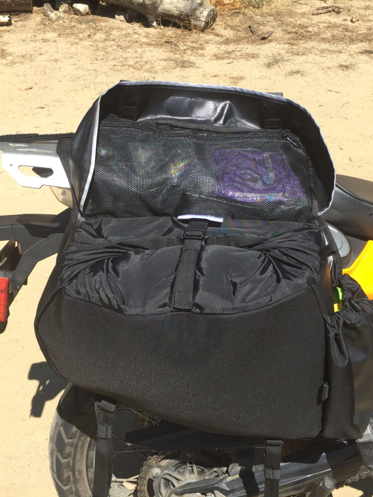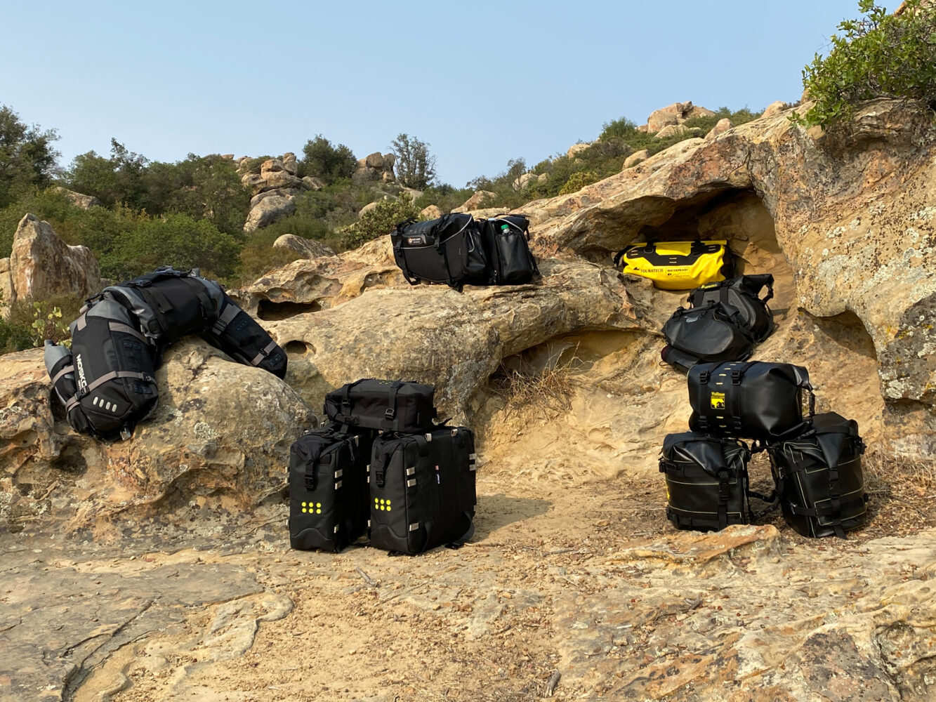Touratech’s Extremes are the lightest of the test and hold the least gear, but are ably supplemented by the Adventure dry bag.