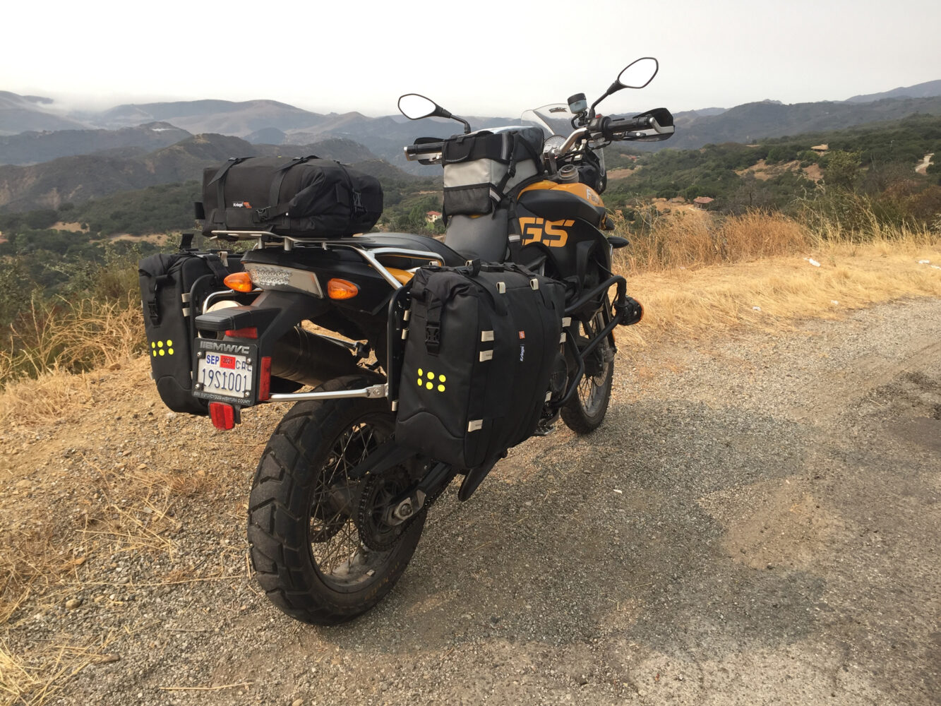 Testing began with an examination of each article for material and construction quality. Luggage was then packed with the 48-pound load I carried for 800 miles of the Idaho Backcountry Discovery Route (BDR) last summer and secured per manufacturer instructions. I unloaded and reloaded the luggage as if camping, then removed it from the motorcycle and replaced it to simulate a night in a motel. Ride testing included freeway, canyons, and rough roads. Due to California’s fires and forest closures, not all luggage was run on dirt, but there is plenty of potholed pavement in the Golden State to give things a good bounce assessment. I noted whether each system stayed secure, if it hampered me from shifting position on the bike, its width versus that of the GS handlebars (38 inches with Barkbusters), and how it affected the motorcycle’s handling. The waterproofing test used a garden hose to simulate hard rain and road spray, and all models passed.