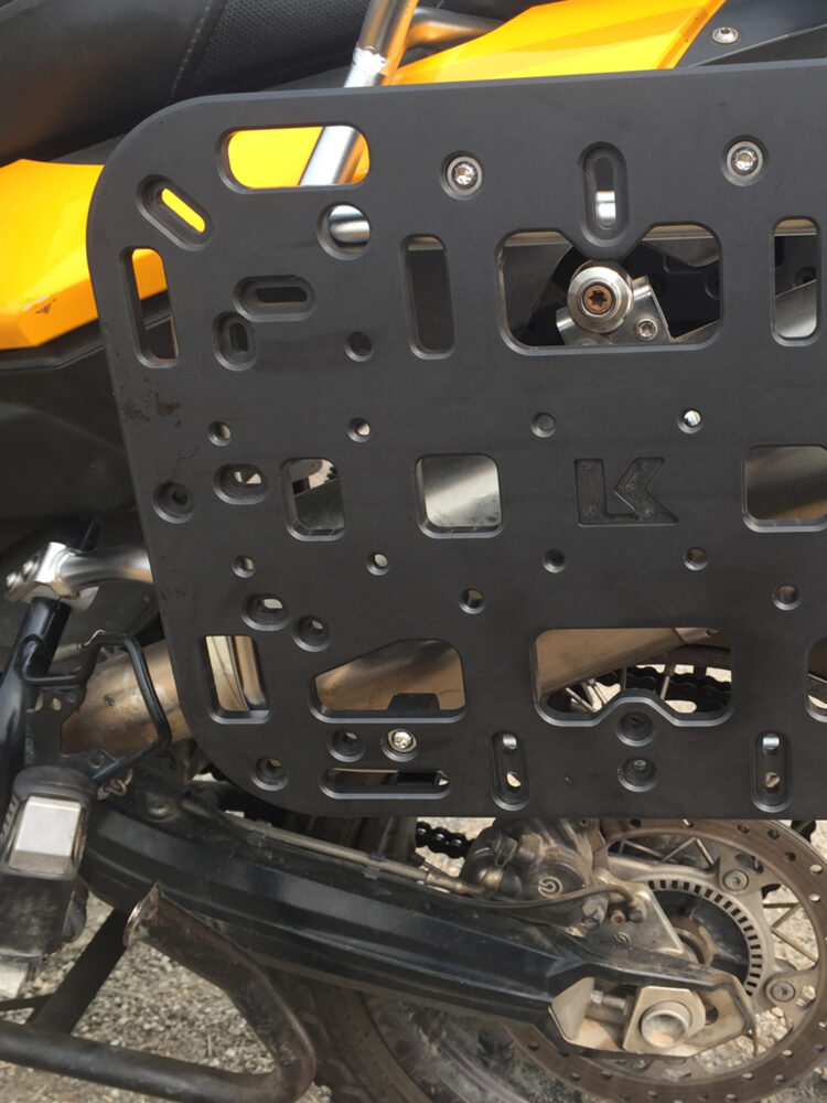 A feature of racks is preventing bodywork from getting scuffed up by panniers. Despite my efforts to prevent damage from rackless luggage with films and tape, the thousands of miles I’ve ridden my GS with such bags are indelibly recorded in the bike’s rear plastics. As tempting as this attractive and functional rack is, I’m still a stickler about weight and will likely remain a devotee of rackless luggage to save a few pounds. My weight obsession aside, anyone shopping for a rack should consider Touratech’s offering.